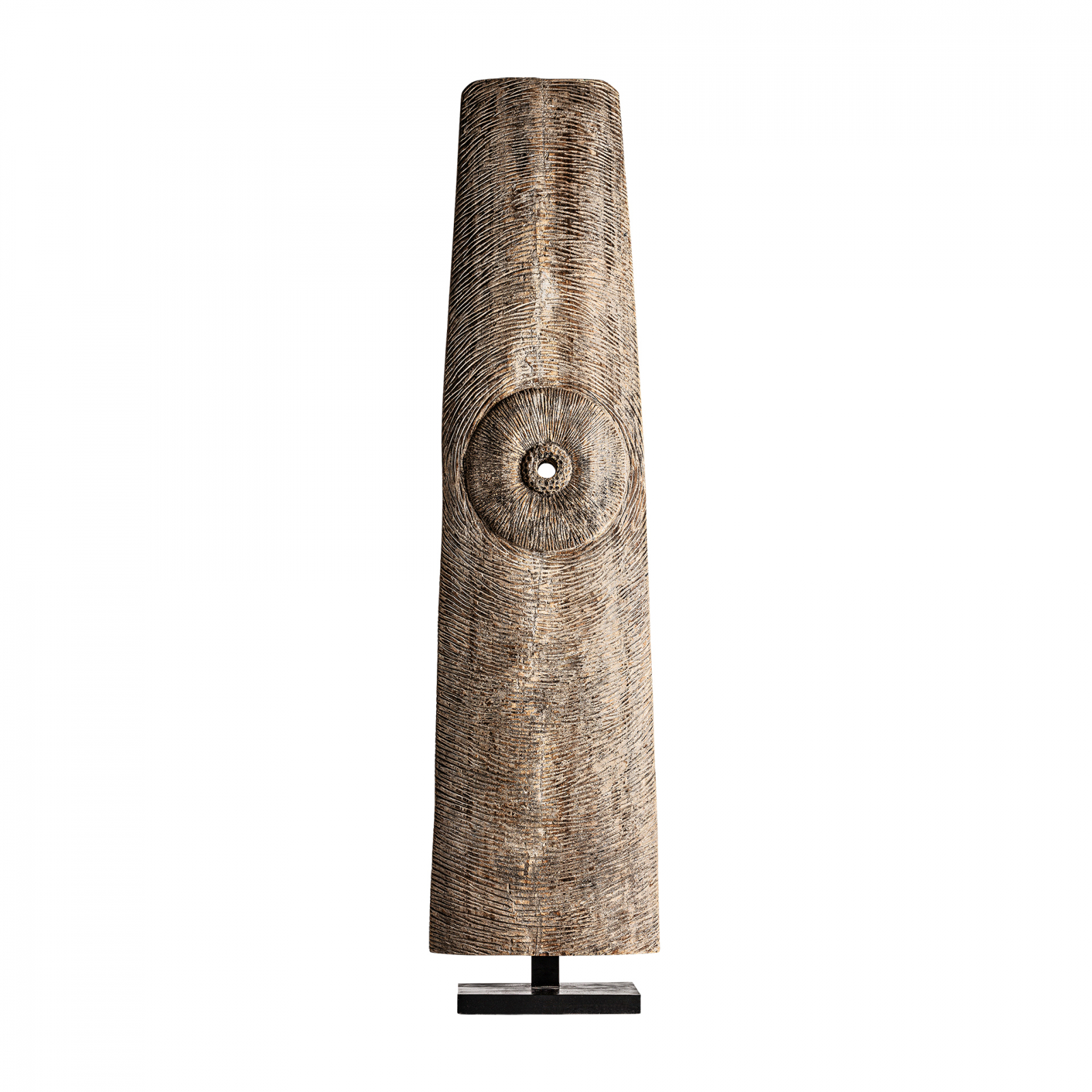 Această sculptură înaltă de podea unicat, o creație artizanală în stil etnic, prezintă nuanțe calde de maro într-un design expresiv și monumental. Realizată din lemn de mango, această piesă decorativă spaniolă aduce o prezență impunătoare și autentică în orice interior. Cu dimensiuni impresionante de 65 cm lățime, 35 cm adâncime și 267 cm înălțime, și o greutate substanțială de 106,5 kg, sculptura oferă o prezență verticală dramatică. Lemnul de mango conferă durabilitate și o textură bogată, subliniind forma sculpturală unică. Fiind un produs realizat manual și un unicat, această sculptură are o valoare artistică deosebită, reprezentând o piesă de colecție în stilul etnic contemporan.