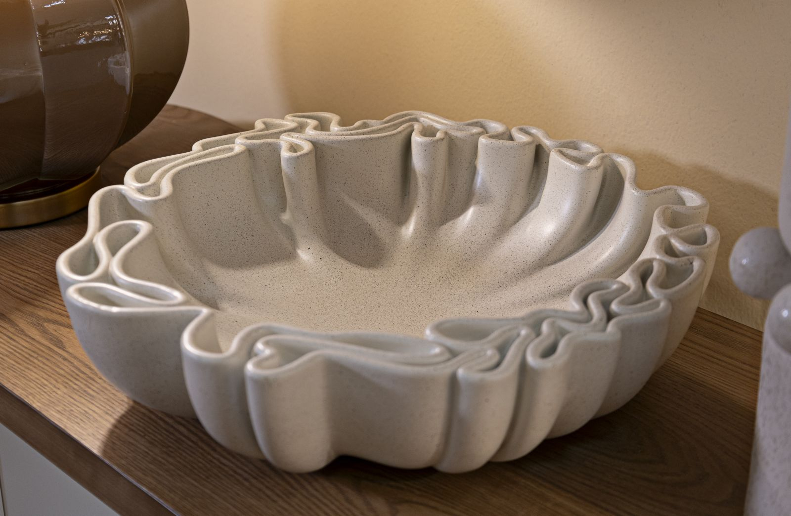 Acest bol decorativ impresionează prin forma sa generoasă și textura ce reproduce fidel aspectul natural al pietrei, oferind o notă sofisticată și modernă. Este o piesă decorativă de accent care poate fi integrată cu ușurință într-un living, dining sau hol, adăugând eleganță și rafinament.