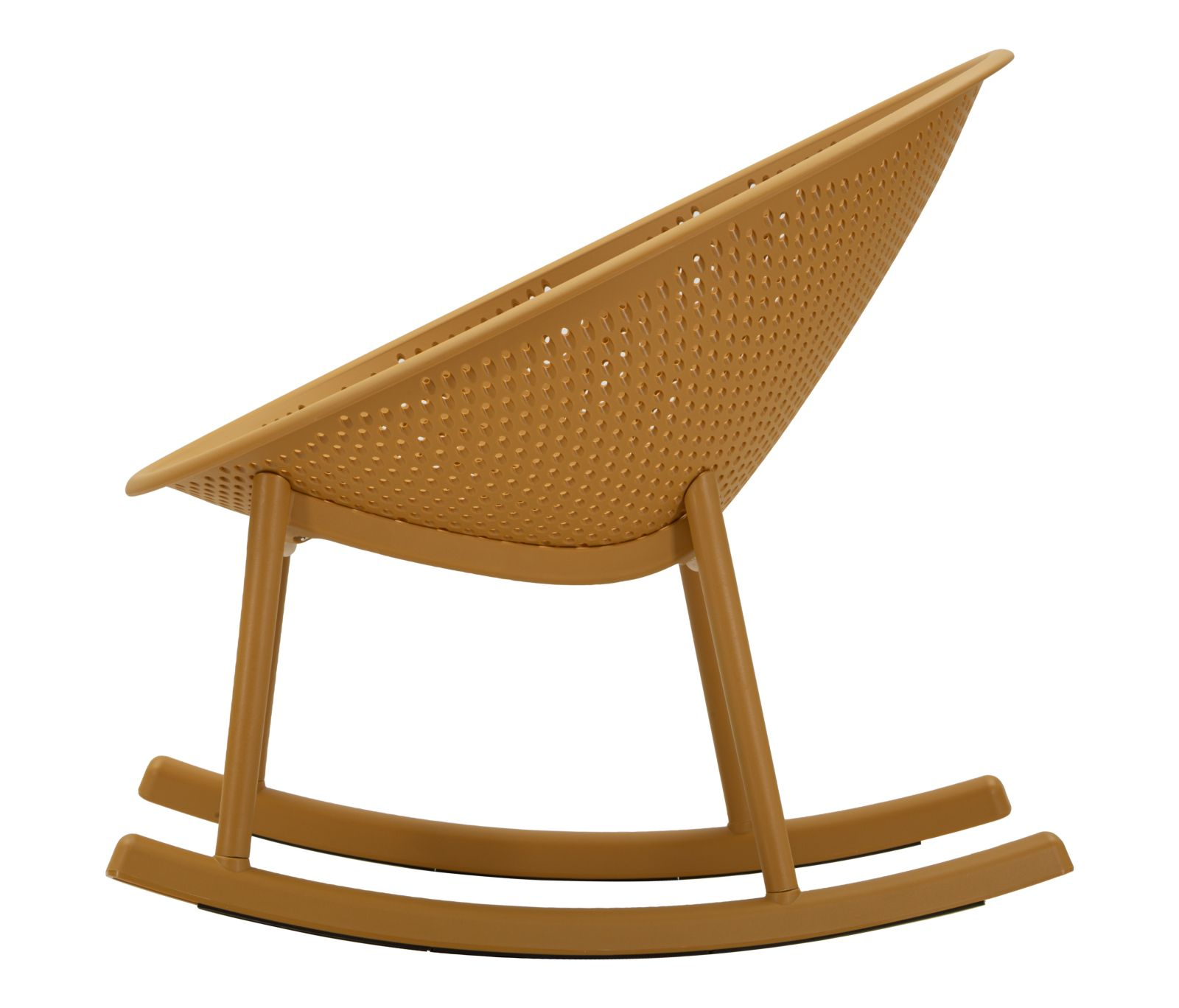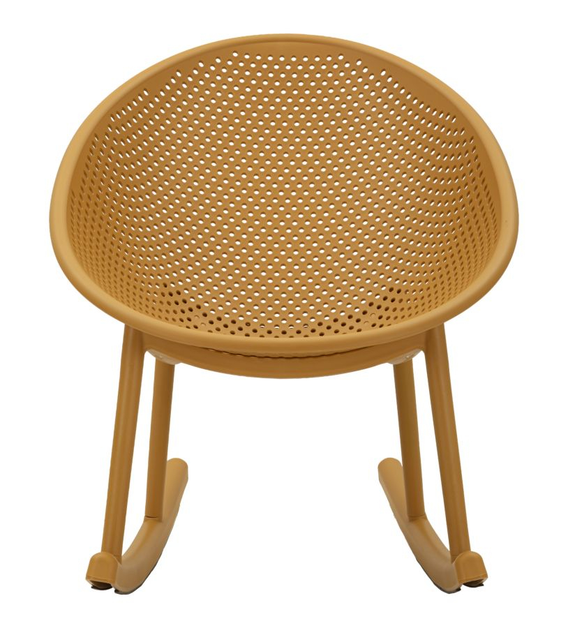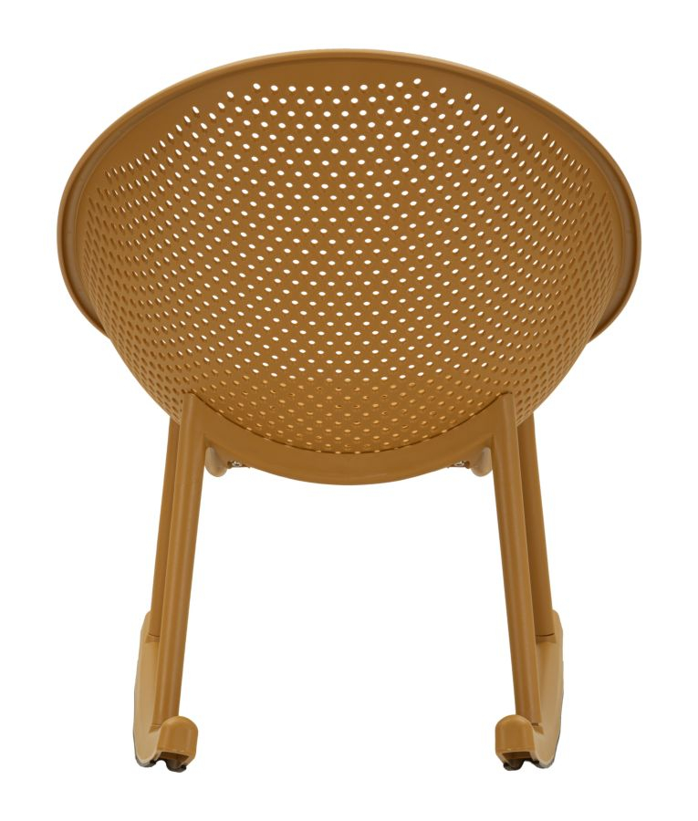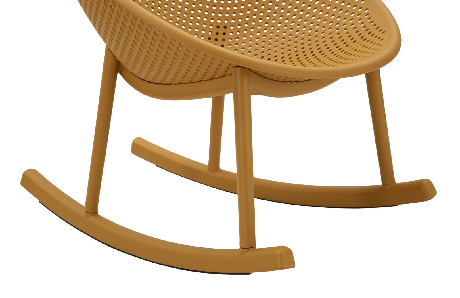 Set de 2 scaune balansoar pentru grădină și HoReCa din plastic culoare muștar cu design perforat modern Ibiza 66x88x80 cm