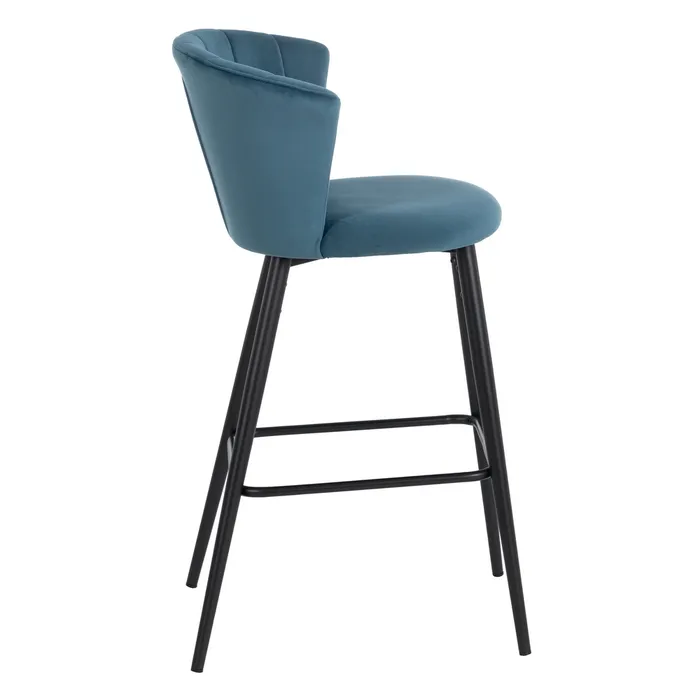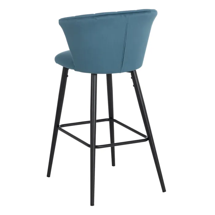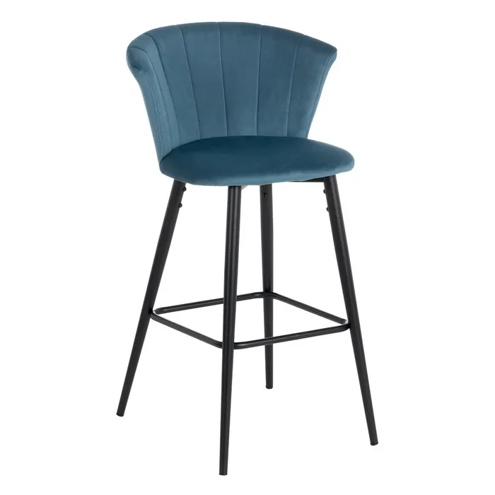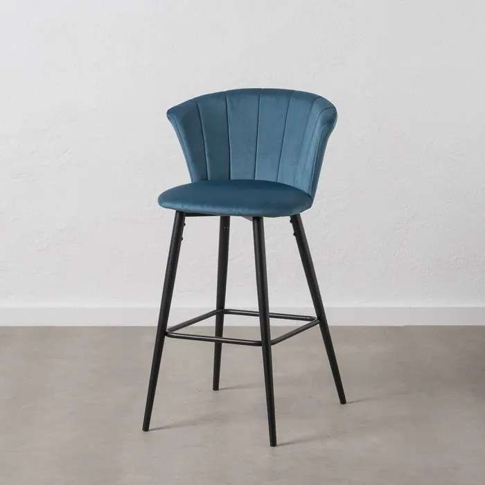 Scaun de bar din catifea albastră pentru decoruri rafinate.