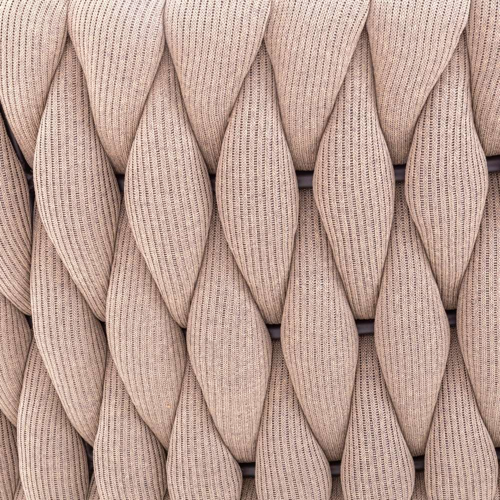 Materiale: structură din aluminiu, împletitură decorativă din țesătură de olefină, tapițerie în nuanță taupe