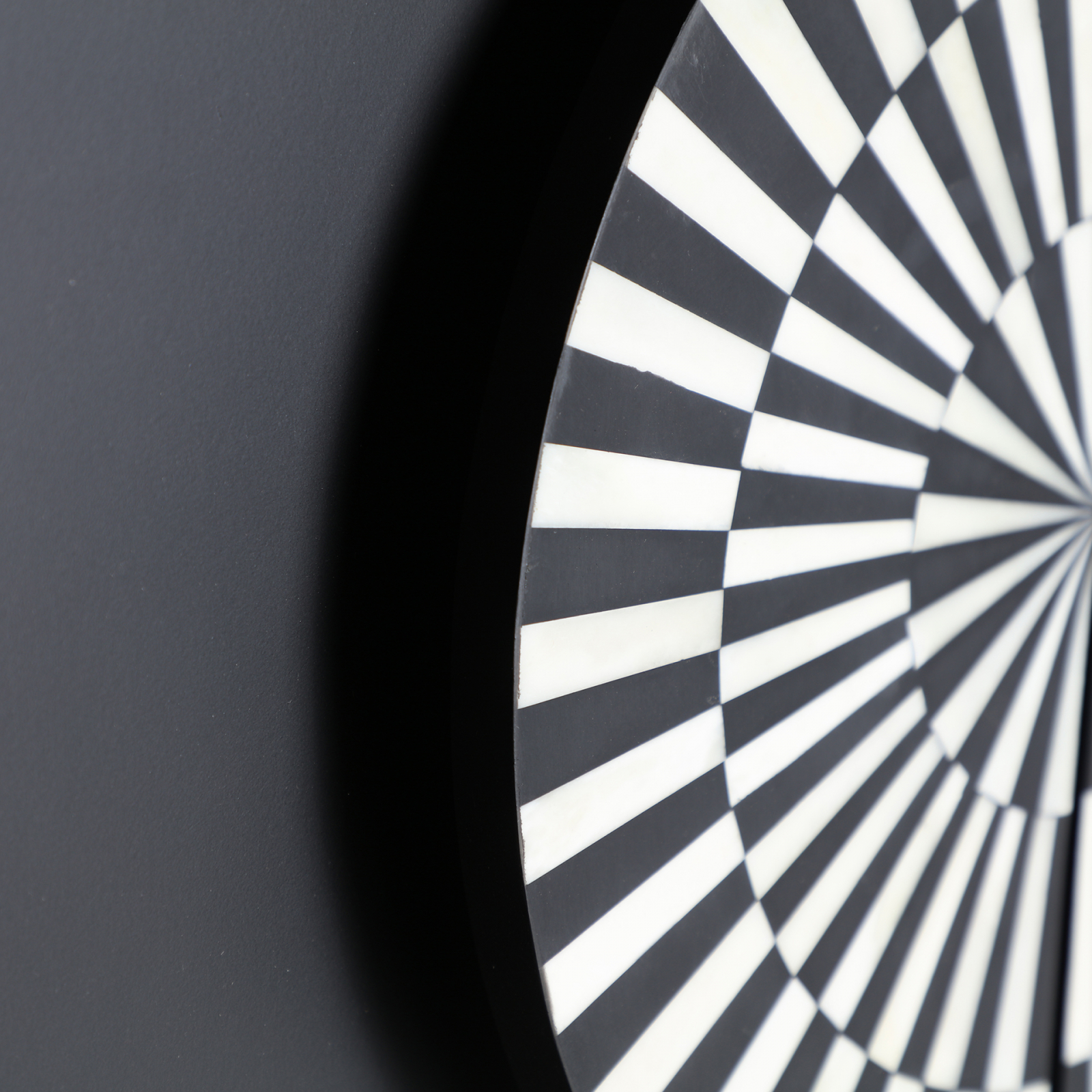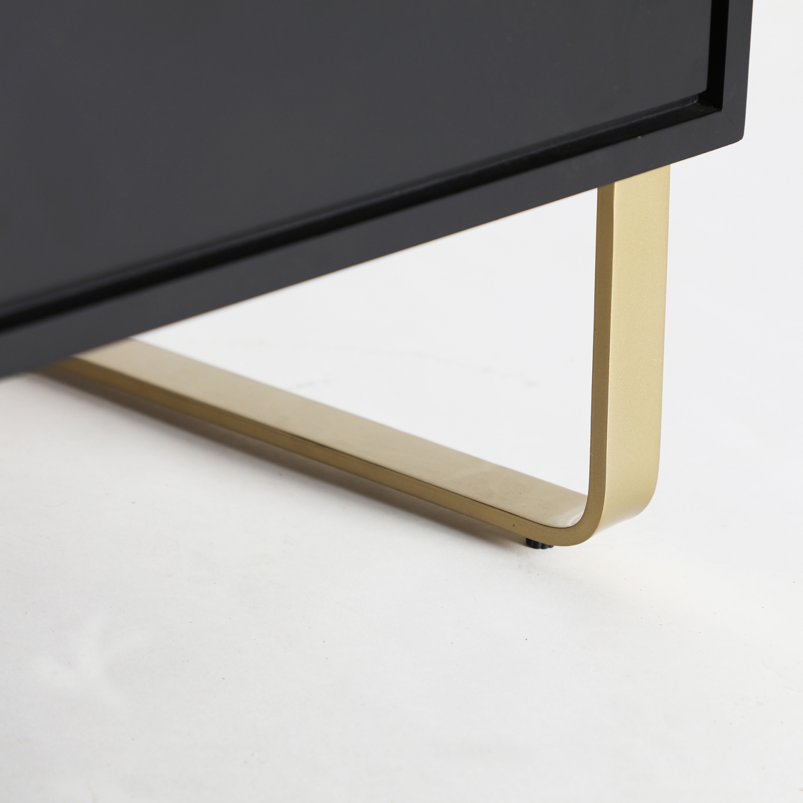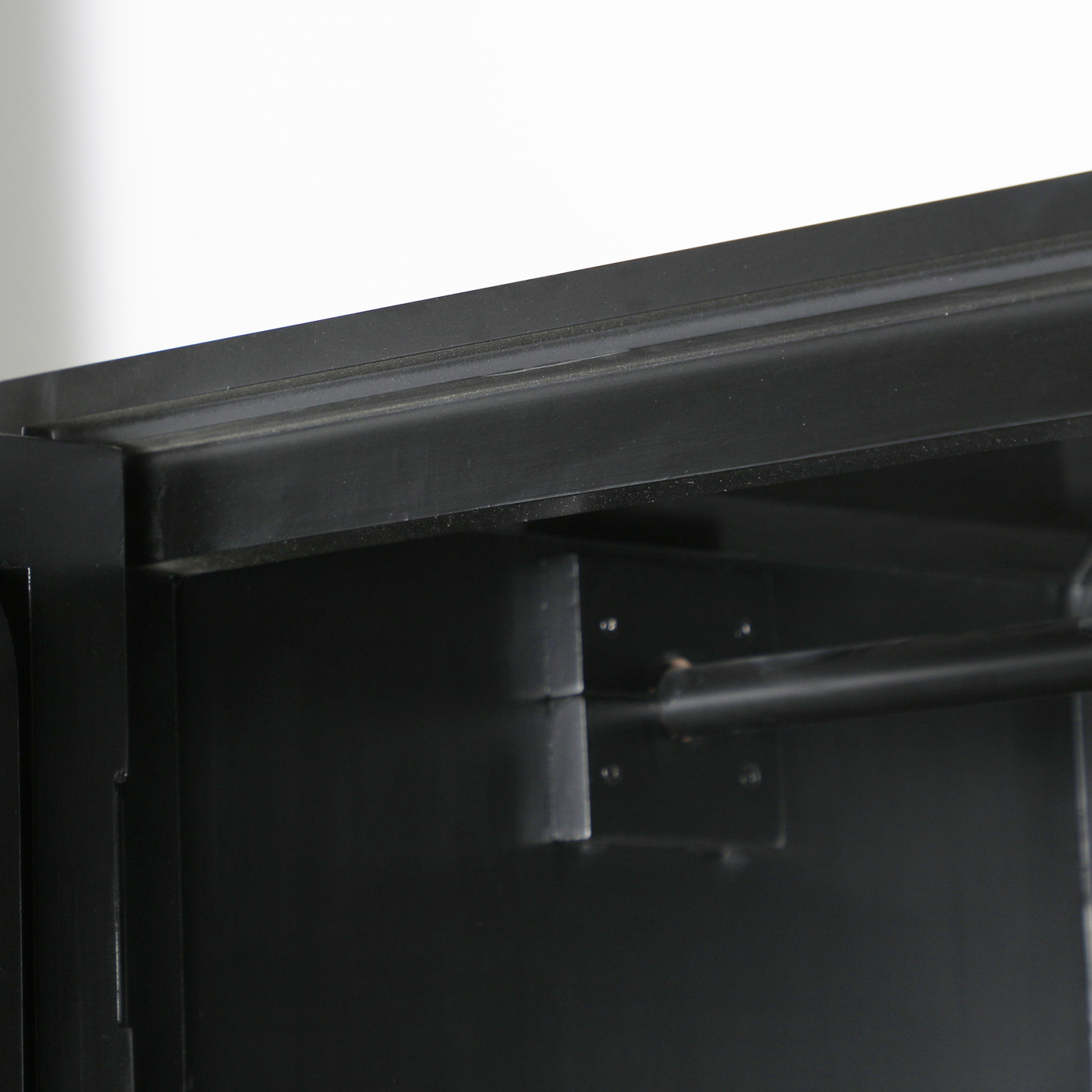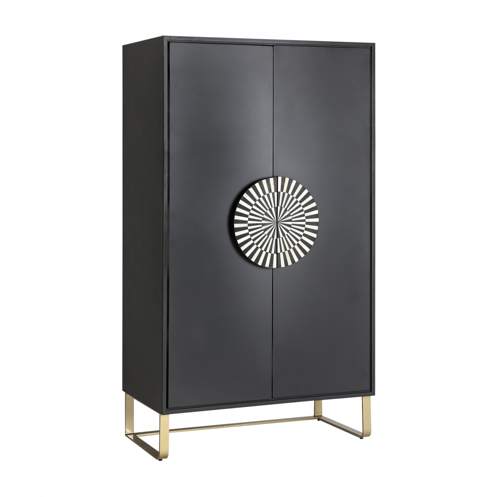 Dulap Art Deco din MDF cu contrast opulent între negru, alb și auriu. Piesă artizanală cu detalii din fier și os, ideală pentru interior luxos.