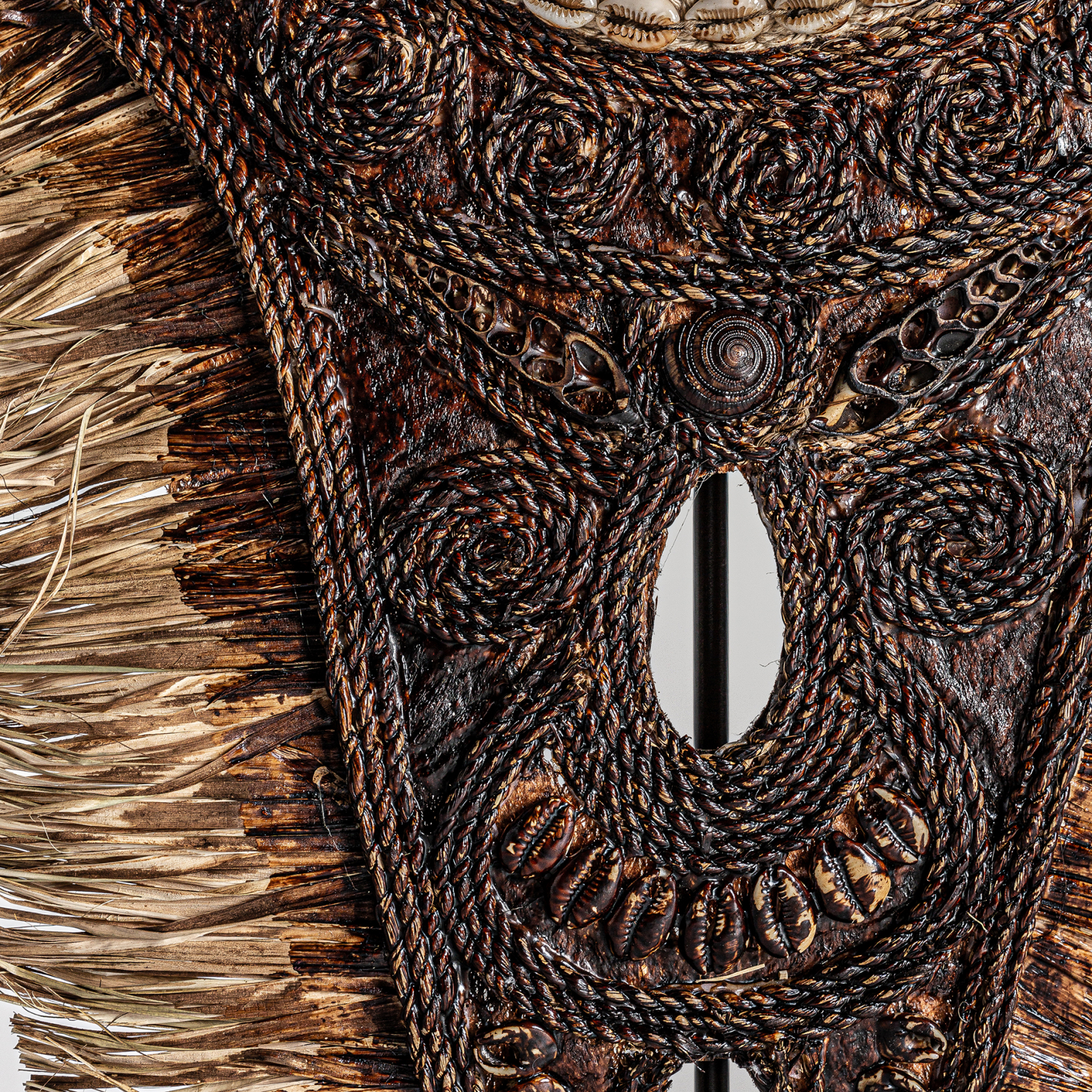 Statuetă decorativă în stil etnic, creată artizanal din fibră naturală și scoici. Piesă unică cu design vertical și expresiv, ideală pentru decor maritim și autentic.
