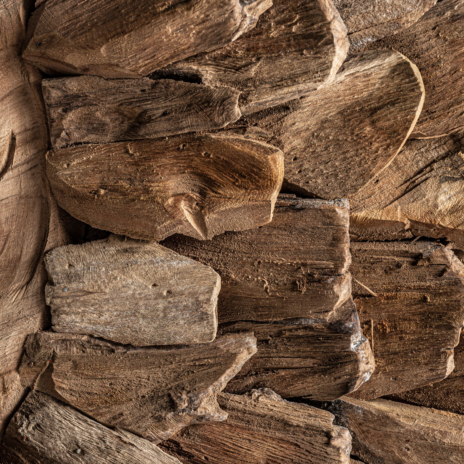 Această statuetă decorativă unicat, o creație artizanală în stil etnic, prezintă nuanțe calde de maro învechit într-un design robust și expresiv. Realizată din lemn de tec, această piesă decorativă spaniolă aduce un aer autentic și primitiv în orice interior. Cu dimensiuni de 50 cm lățime, 17 cm adâncime și 57 cm înălțime, și o greutate de 5,25 kg, statueta oferă o prezență impunătoare și grațioasă. Lemnul de tec conferă o durabilitate excepțională și o patină naturală care se îmbunătățește în timp. Fiind un produs realizat manual și un unicat, această statuetă are o valoare artistică deosebită, reprezentând o piesă de colecție rară în stilul etnic.