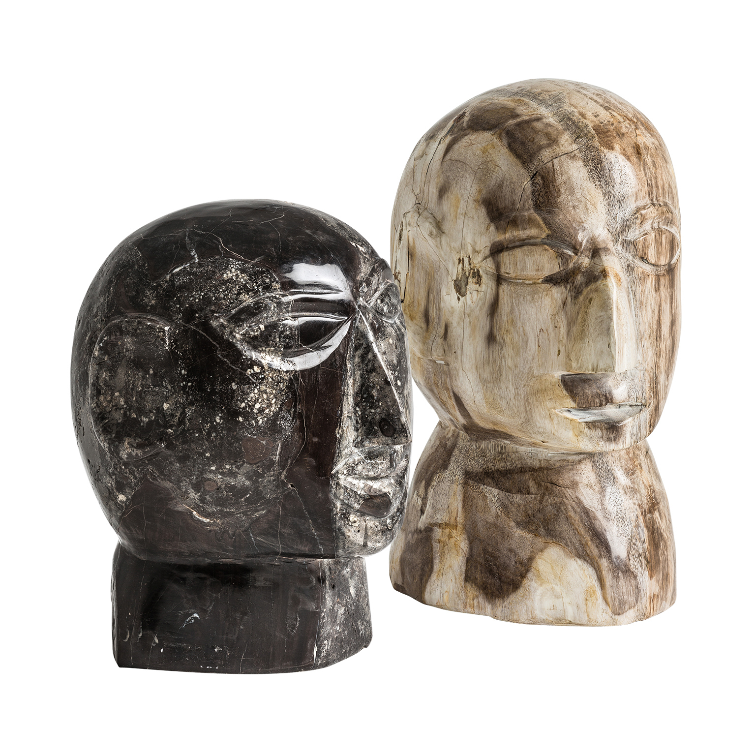Bust etnic din lemn petrificat maro invechit. Design compact pentru interior misterios. Bust decorativ cu valoare stiintifica.