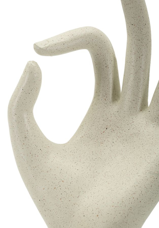 Acest set de două statuete în formă de mână ce reproduce gestul „OK” este un simbol modern al pozitivismului și al comunicării universale. Realizate din rășină rezistentă, cu finisaj bej texturat, piesele adaugă o notă contemporană și originală în decorul oricărei încăperi.