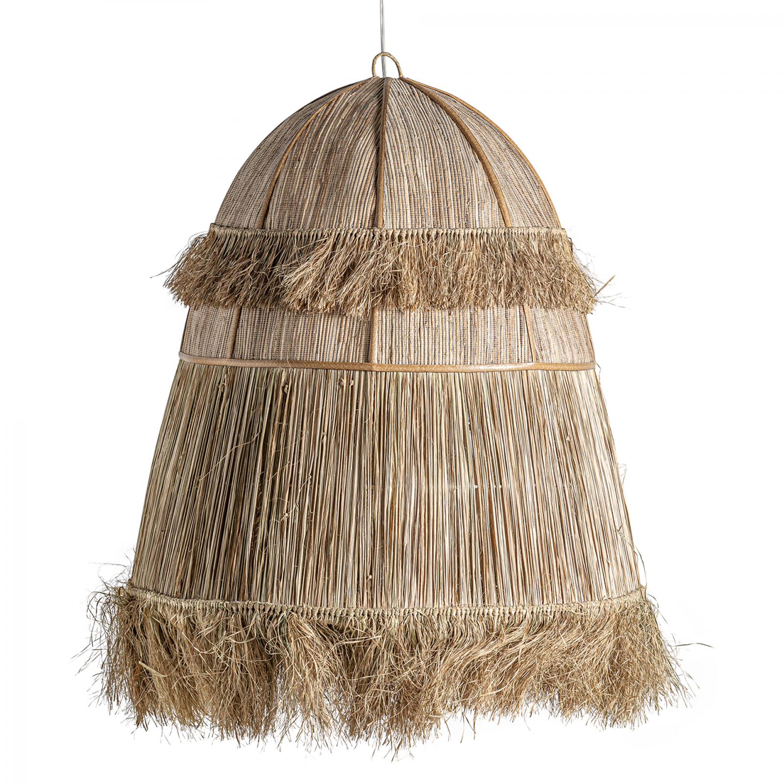 Lustra boho din lemn de cocos si fibra naturala. Corpuri de iluminat cu textura si caldura, ideale pentru interioare eclectice. Lustre boho cu aspect organic si difuzie placuta a luminii.