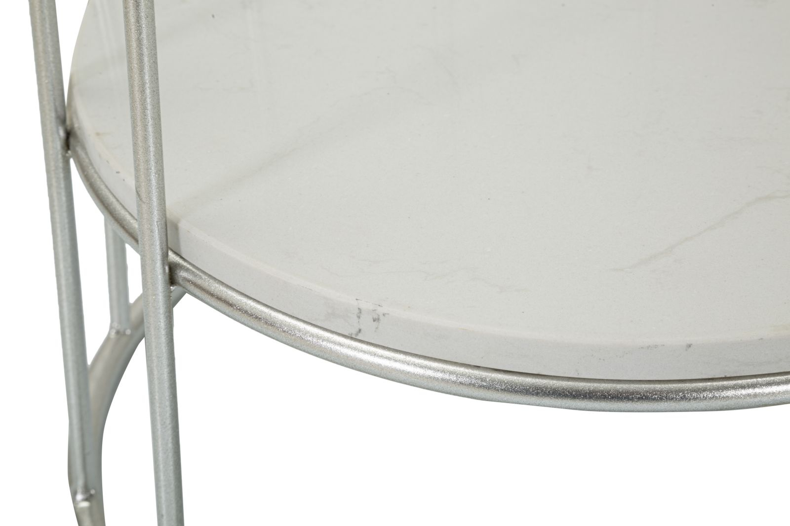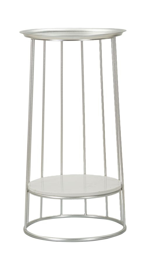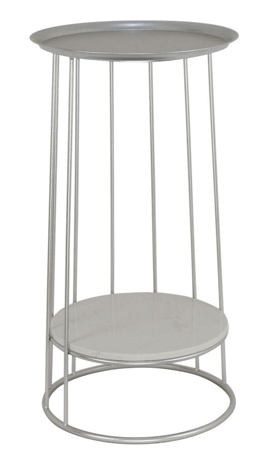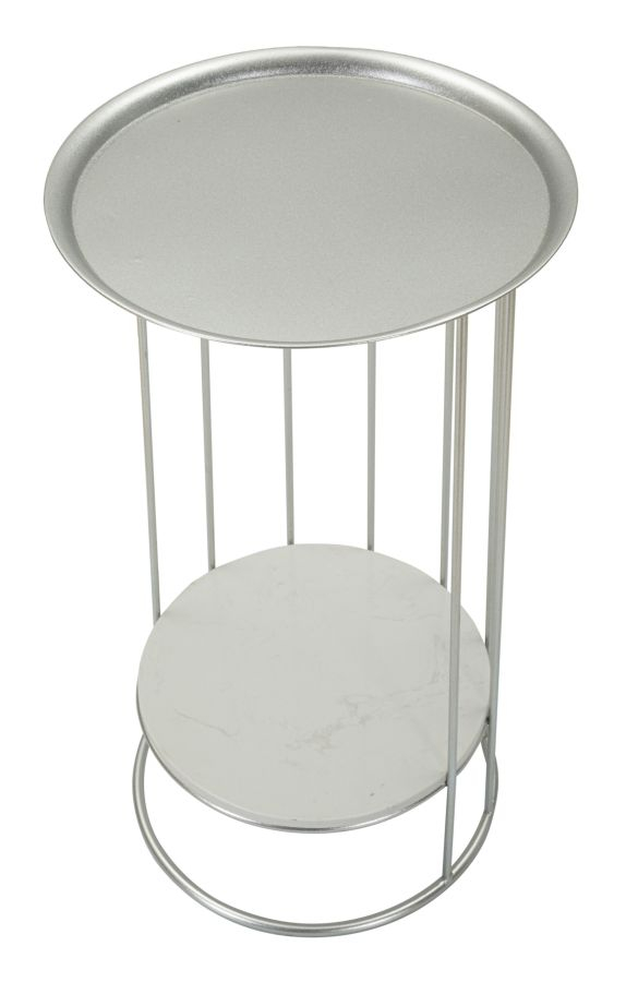 Mauro Ferretti Măsuță înaltă argintie cu raft de marmura si blat metalic tip tavă Towery 40x76 cm
