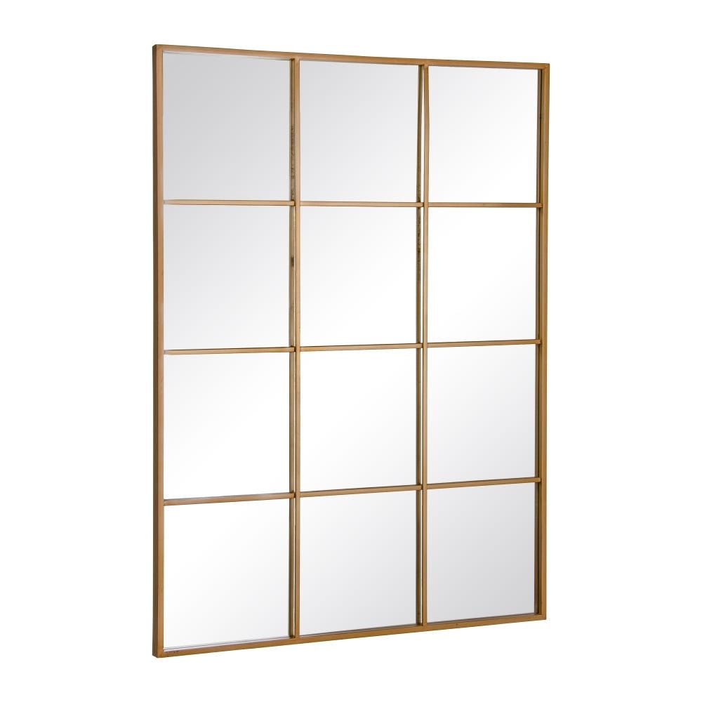 Construcția robustă din metal și suprafața de sticlă cristal asigură rezistență și durabilitate, în timp ce sistemul de prindere integrat facilitează montajul vertical. Versatilă și modernă, oglinda aurie tip fereastră este ideală pentru a completa interioare elegante, contemporane sau chiar cu influențe industriale chic.