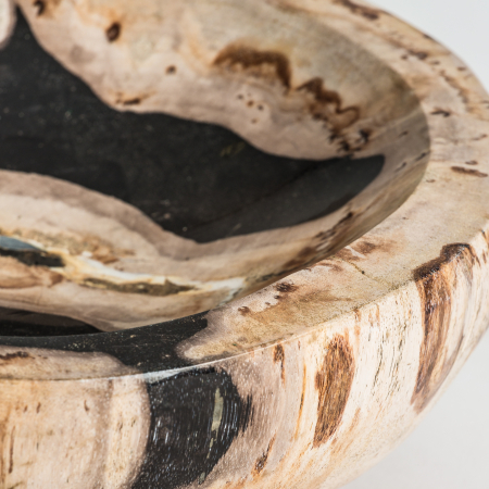 Bol decorativ etnic din lemn pietrificat, cu aspect unic si caracter istoric. Piesa artizanala pentru interior autentic.