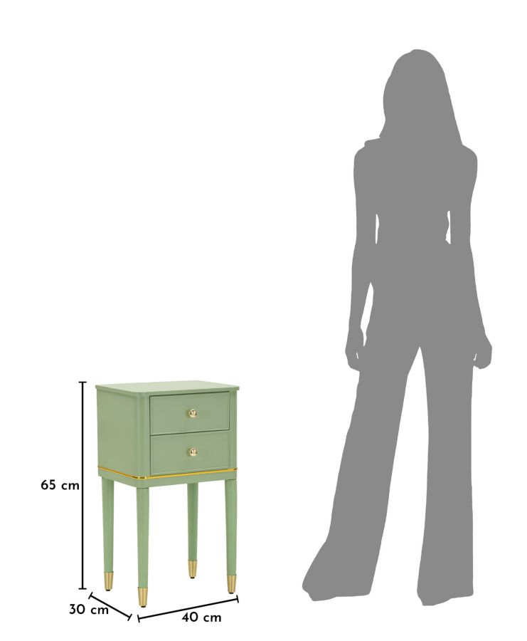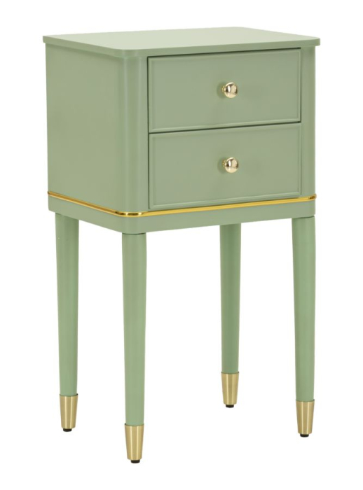 Noptiera Camille în nuanță verde salvie aduce un plus de rafinament și prospețime în zona de dormit. Tonul natural, calm și elegant este completat de detalii aurii delicate, creând o piesă de mobilier care transmite echilibru, stil și o atmosferă relaxantă.