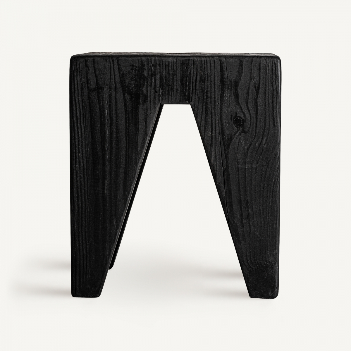 Vical Taburet negru artizanal din lemn de pin reciclat 35x35x40 cm