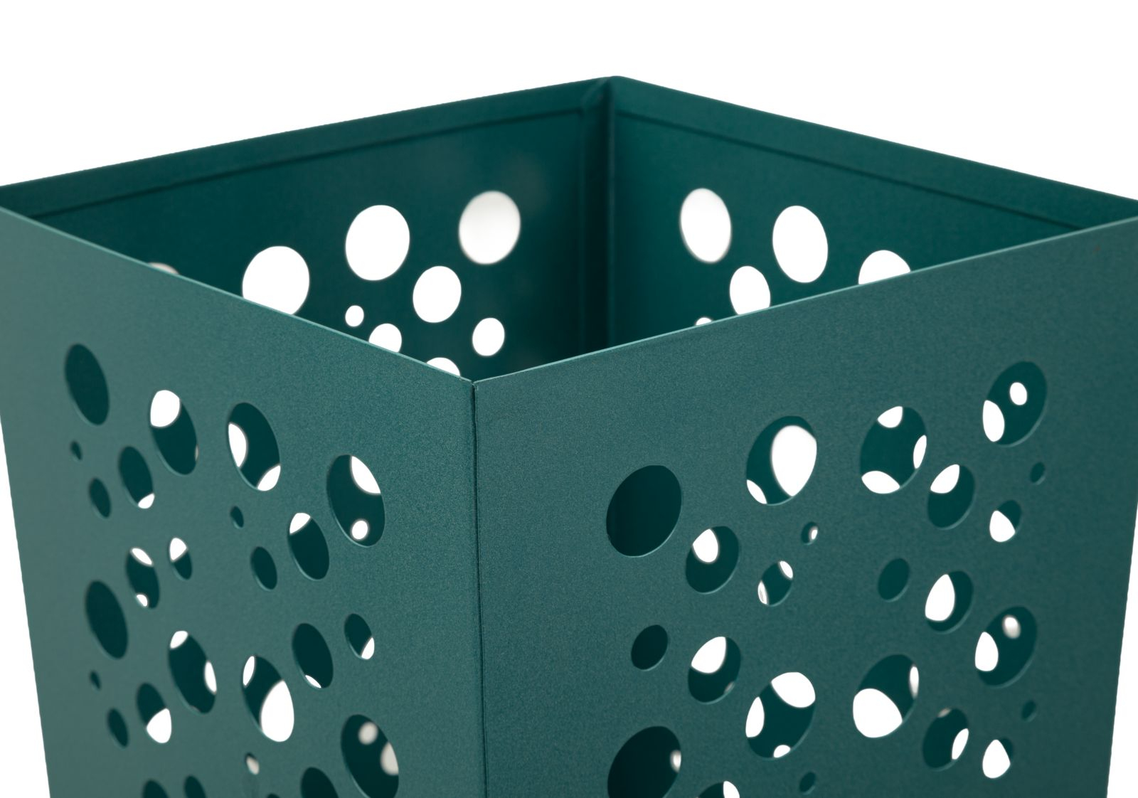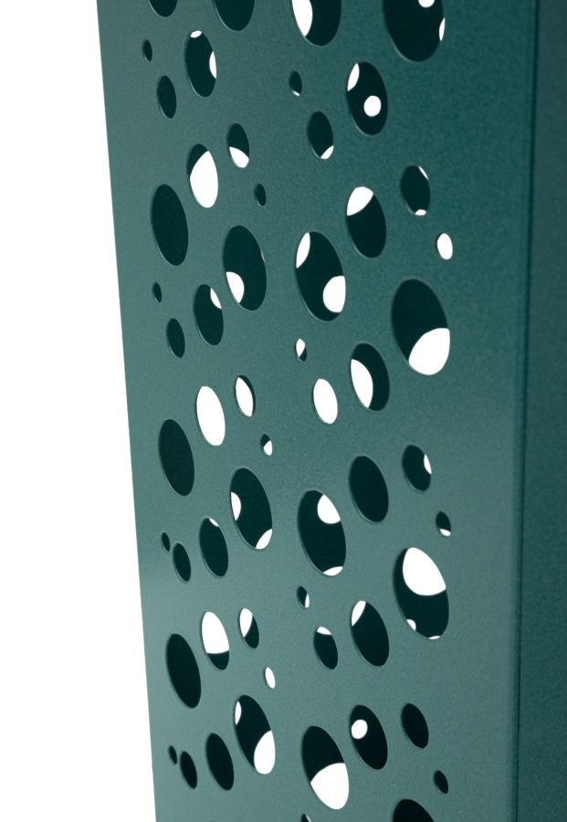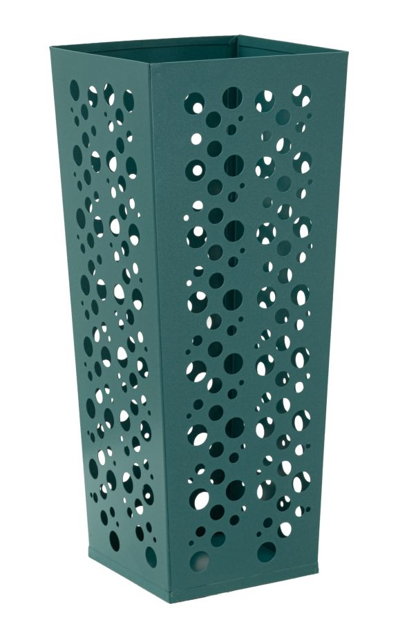 Suportul pentru umbrele Fit în nuanță verde petrol îmbină funcționalitatea cu un design modern și elegant. Modelul perforat format din cercuri de dimensiuni diferite creează un efect vizual ușor și decorativ, adăugând personalitate spațiului de la intrare.