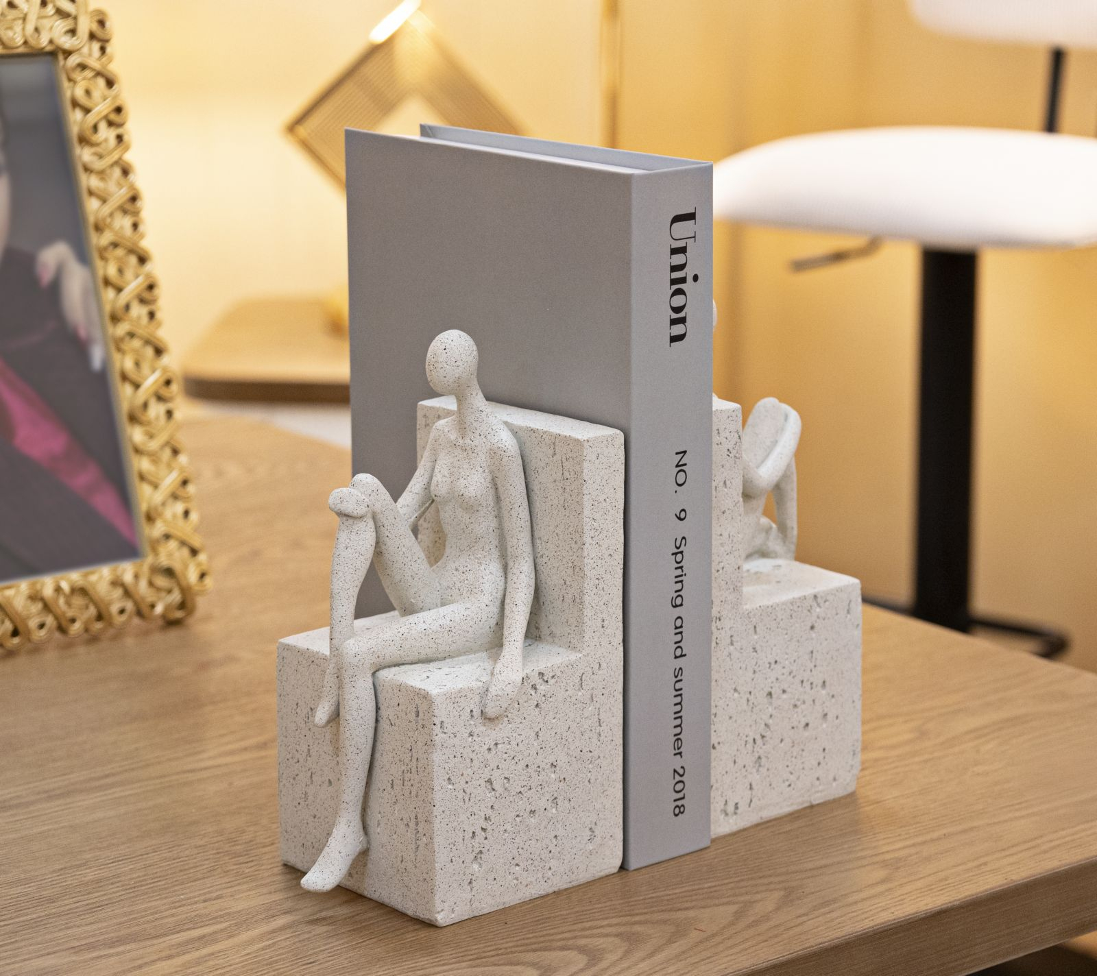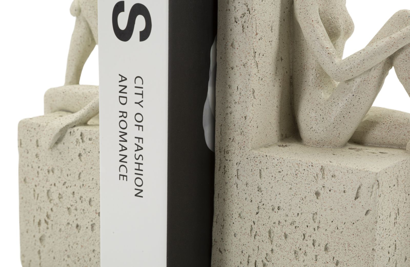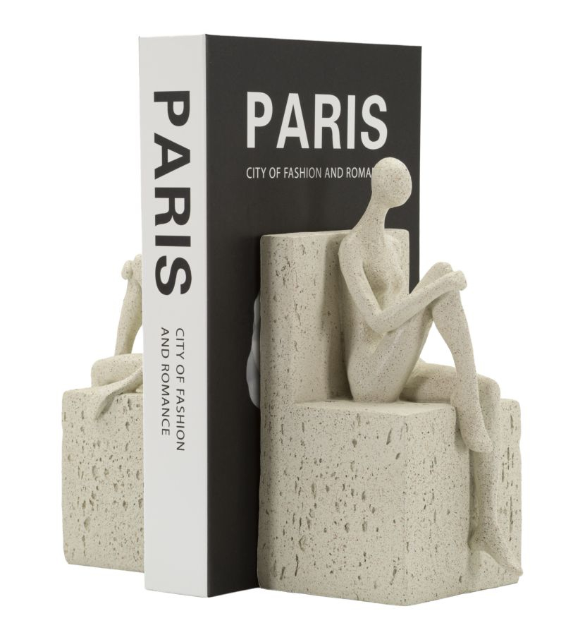 Setul Stons este o piesă decorativă cu dublă funcționalitate: suport practic pentru cărți și element artistic pentru biblioteca sau biroul tău. Cele două figuri stilizate, realizate din rășină cu finisaj texturat, transmit echilibru și armonie, transformând o simplă utilitate într-un obiect de design.