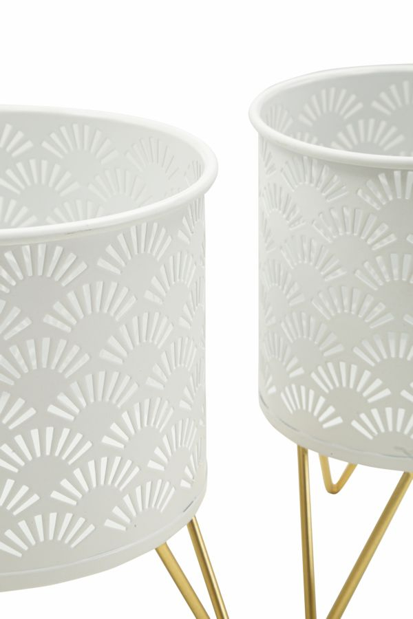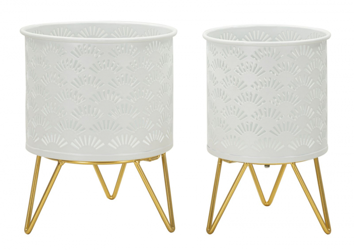 Suporturi de ghivece stil glam, perfecte pentru a susține plantele într-un decor interior elegant. Design perforat, contrastează modern cu finisajul auriu, ideale pentru decoruri rafinate.