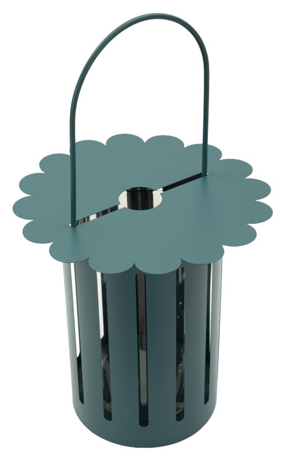 Felinarul Saturn impresionează prin designul său contemporan și liniile clare, completate de un finisaj satinat în nuanță verde petrol. Forma cilindrică este pusă în valoare de decupajele verticale care creează jocuri elegante de lumină și umbră, transformând orice ambient într-un spațiu cald și primitor.