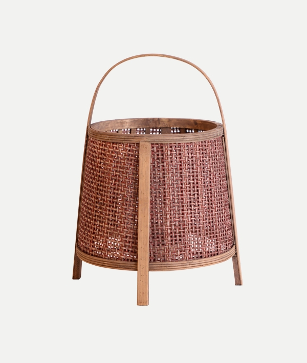 Combinația dintre bambusul maro și materialul burgundy adaugă un contrast elegant, perfect pentru interioare boho, rustice sau mediteraneene. Mânerul integrat îl face ușor de transportat sau suspendat, transformându-l într-un accesoriu versatil pentru living, terase acoperite sau zone de relaxare.