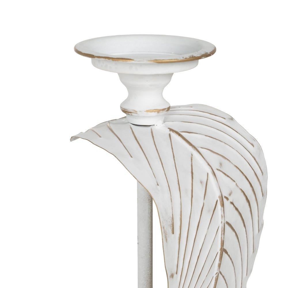 IXIA Suport pentru lumânare decorativ înalt cu frunză sculptată din metal alb 20 x 19 x 92 cm