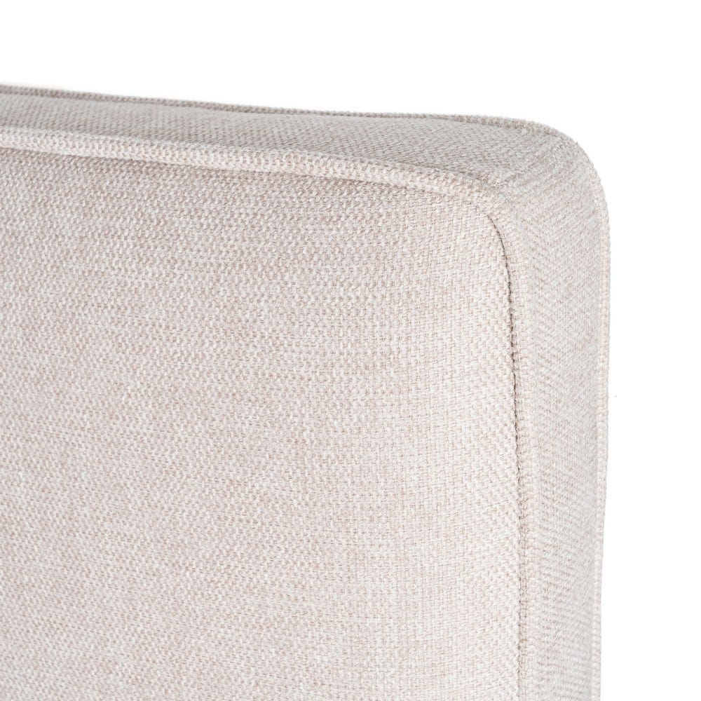 Tăblia este tapițată într-o stofă bej plăcută la atingere, iar cele două panouri capitonate creează un efect vizual armonios și liniștit. Liniile sale drepte și proporțiile echilibrate o fac potrivită pentru dormitoare moderne, contemporane sau chiar minimaliste, unde simplitatea este esențială. Textura textilă fină adaugă senzația de confort, fără să încarce vizual spațiul.