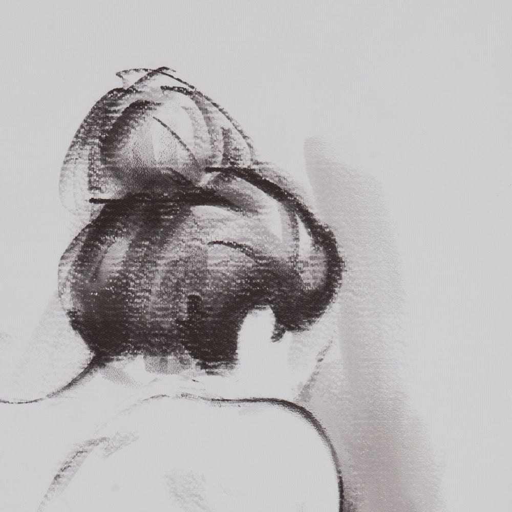 Acest set de două tablouri monocrome cu tematică feminină redă într-o formă artistică, elegantă și senzuală, silueta femeii privită din spate. Stilul grafic, cu tușe expresive de cărbune și umbre discrete, amintește de studiile clasice de atelier, reinterpretate într-o cheie contemporană minimalistă.