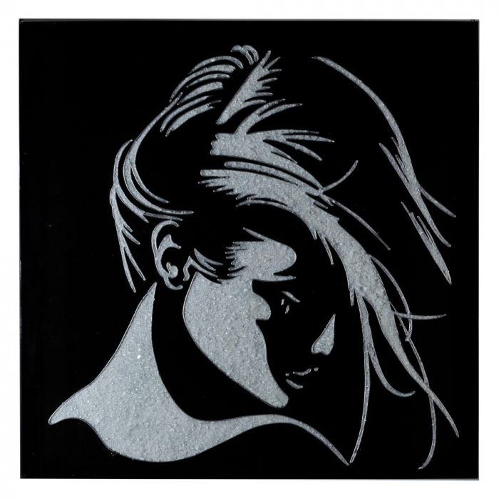 Designul grafic inspiră mister, atitudine și stil contemporan. Este piesa ideală pentru cei care caută un element artistic cu impact vizual puternic, dar cu o simplitate aparentă ce atrage privirea.