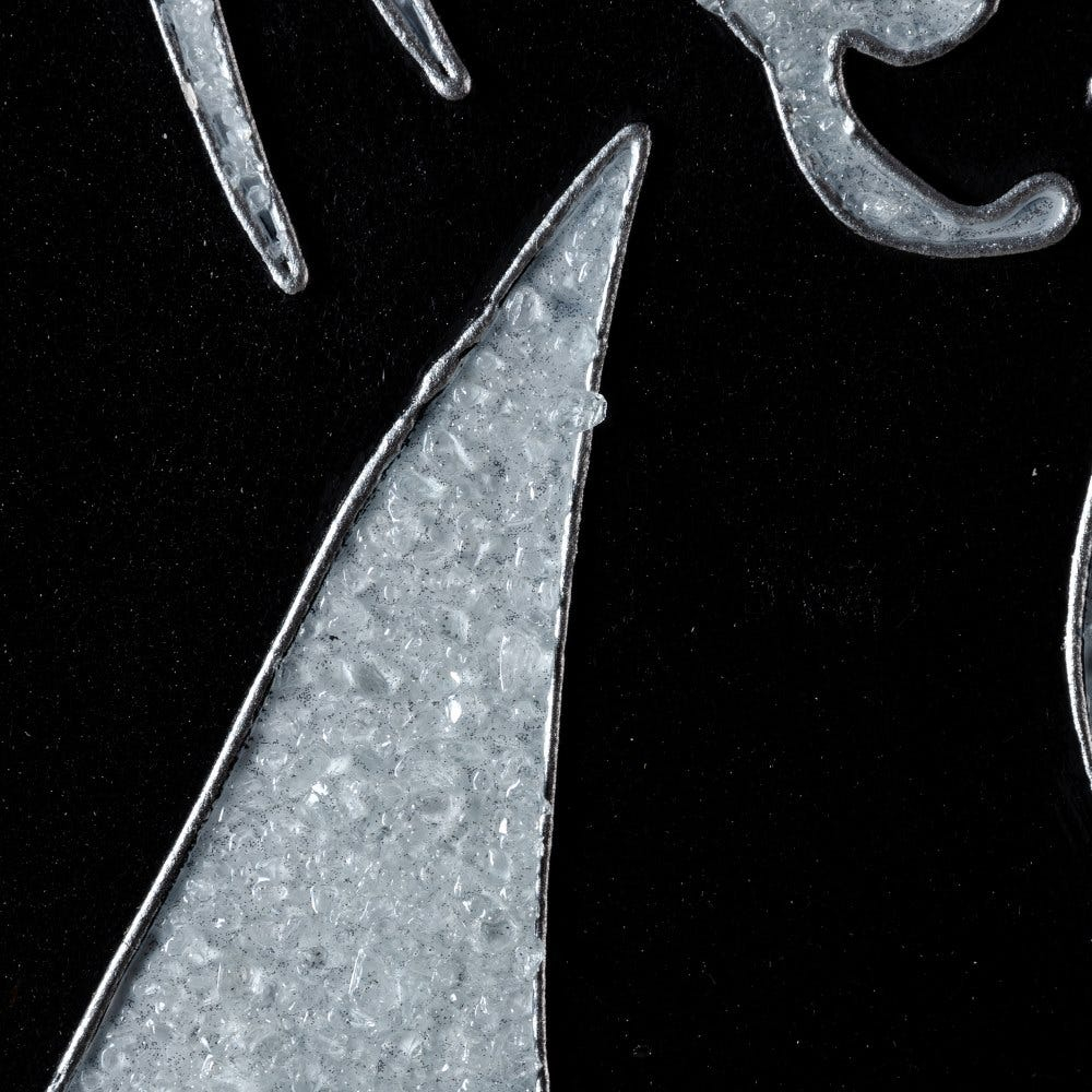 Acest tablou pătratic, cu o siluetă feminină redată din linii fine glitterate pe fundal negru profund, este o expresie elegantă a feminității moderne. Lucrarea impresionează prin contrastul puternic, dar rafinat, dintre texturile strălucitoare și suprafața mată, creând un efect vizual sofisticat, perfect pentru un decor urban, minimalist sau glam.