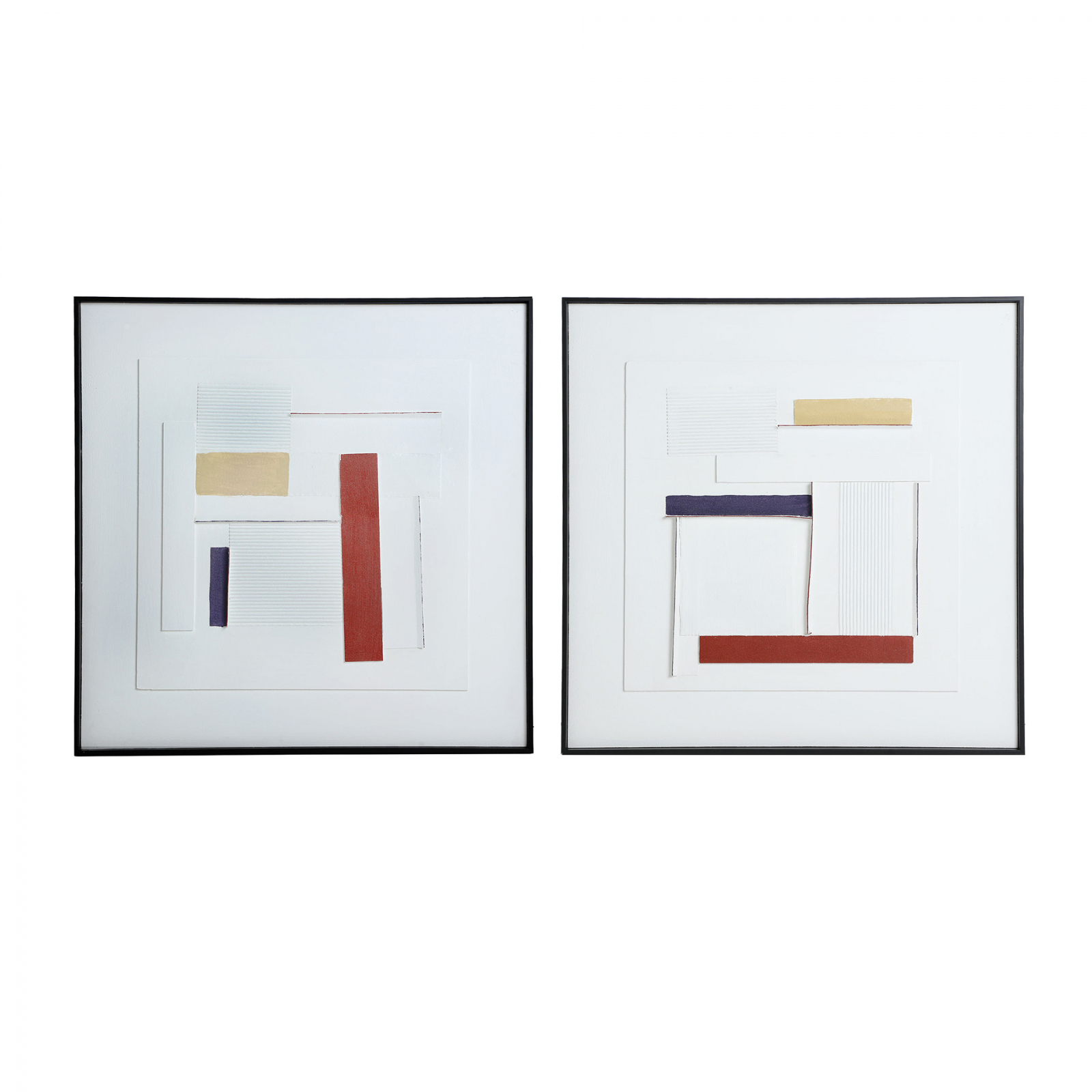 Setul de 2 tablouri Ezio din panza alba cu accente pictate manual ofera un echilibru perfect intre minimalism si rafinament. Cu dimensiunile 80x80 cm fiecare si rame din lemn de abanos, aceste piese adauga luminozitate si eleganta in birouri sau holuri. Stilul contemporan este subliniat prin contrastul dintre albul pur si textura lemnului exotic. Fisa tehnica: Dimensiuni per bucata: 80x4x80 cm, Material: panza, lemn de abanos, Greutate totala: 4.8 kg. Creatie originala spaniola ce combina tehnici traditionale cu designul modern.