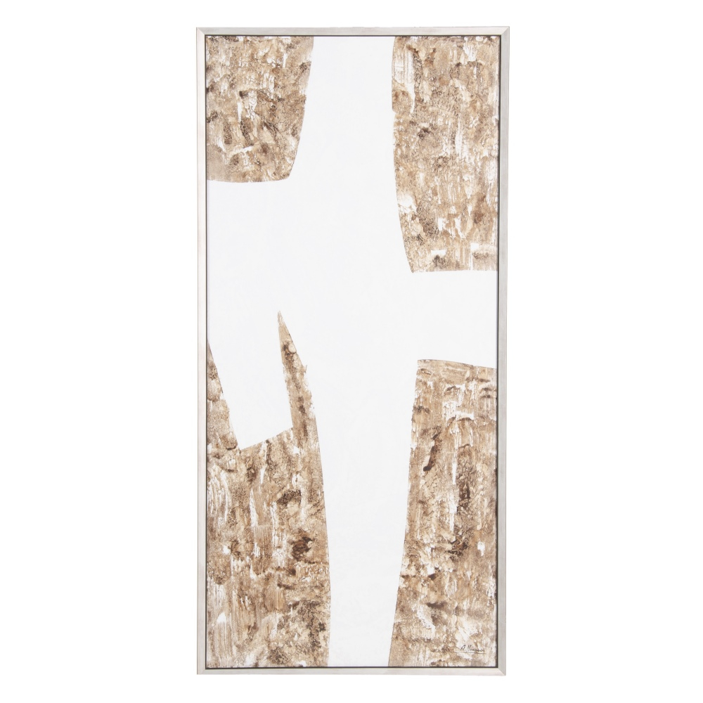 Denzzo Set de 2 tablouri abstracte pictate manual argintii 87 X 4 X 153 CM