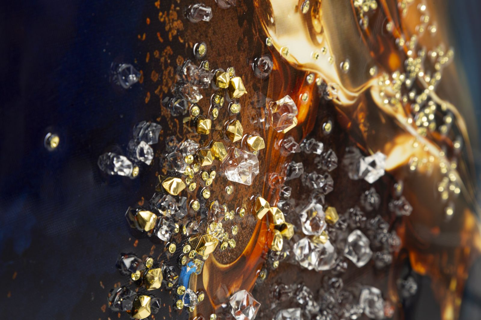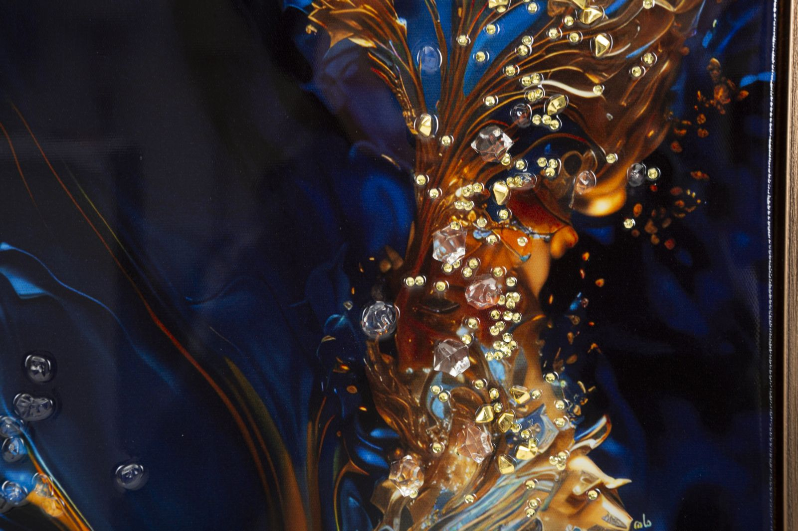 Realizat din pânză aplicată pe cadru din lemn de brad și detalii sintetice texturate, tabloul oferă o experiență vizuală captivantă. Jocul de texturi, straturi și particule transparente conferă dinamism și mișcare, iar fiecare unghi de privire relevă detalii noi – ca o piesă de artă vie. Este ideal pentru un perete statement în living, dormitor elegant sau birou sofisticat, unde accentul cade pe atmosferă, nu pe convenție.
