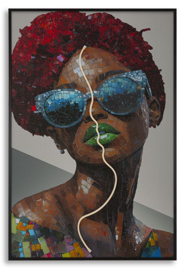 Tabloul Canvas cu LED Afro impresioneaza printr-un portret vibrant realizat in stil mozaic, cu aplicatii 3D din acrilic care adauga textura si profunzime compozitiei. Culorile intense, detaliile expresive si contrastul puternic sunt completate de iluminarea LED integrata, ce accentueaza liniile si confera lucrarii un efect vizual spectaculos.