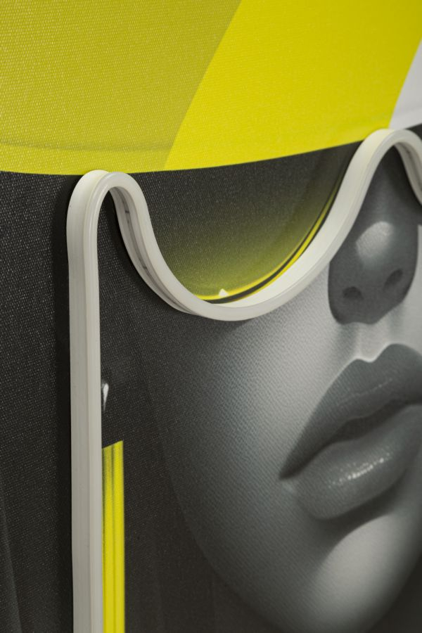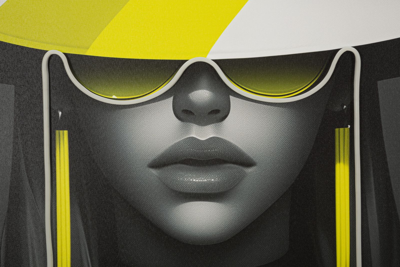 Tabloul Canvas cu LED Margot impresioneaza printr-un portret fashion sofisticat, realizat in tonuri elegante de alb si negru, accentuate de detalii galben neon care atrag imediat privirea. Palarie ampla, ochelari moderni si accesorii minimaliste sunt puse in valoare de iluminarea LED integrata, care subliniaza elementele cheie ale compozitiei.