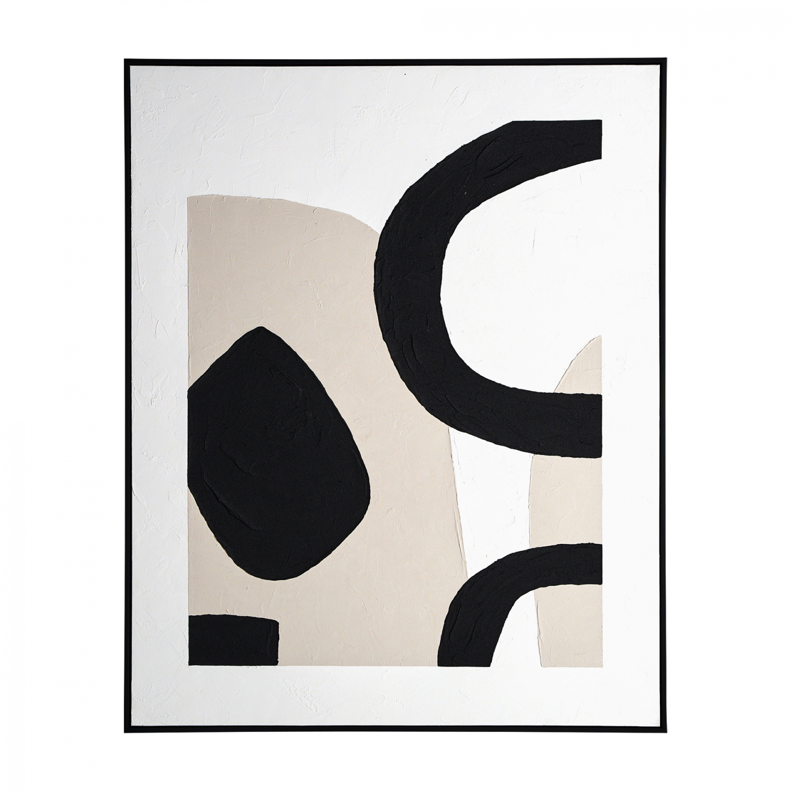 Acest tablou pe pânză, o pictură în ulei realizată artizanal în stil contemporan, prezintă o compoziție elegantă în alb și negru. Realizat manual pe pânză și încadrat în lemn de pin, această piesă de artă spaniolă aduce un contrast rafinat în orice interior modern. Cu dimensiuni de 123 cm lățime, 5 cm adâncime și 153 cm înălțime, și o greutate de 8 kg, tabloul oferă o prezență impunătoare dar echilibrată. Stilul contemporan se evidențiază prin minimalism și expresivitate subtilă. Fiind o pictură în ulei realizată manual, fiecare tablou este unic, cu posibile variații care îi sporesc valoarea artistică și autenticitatea.