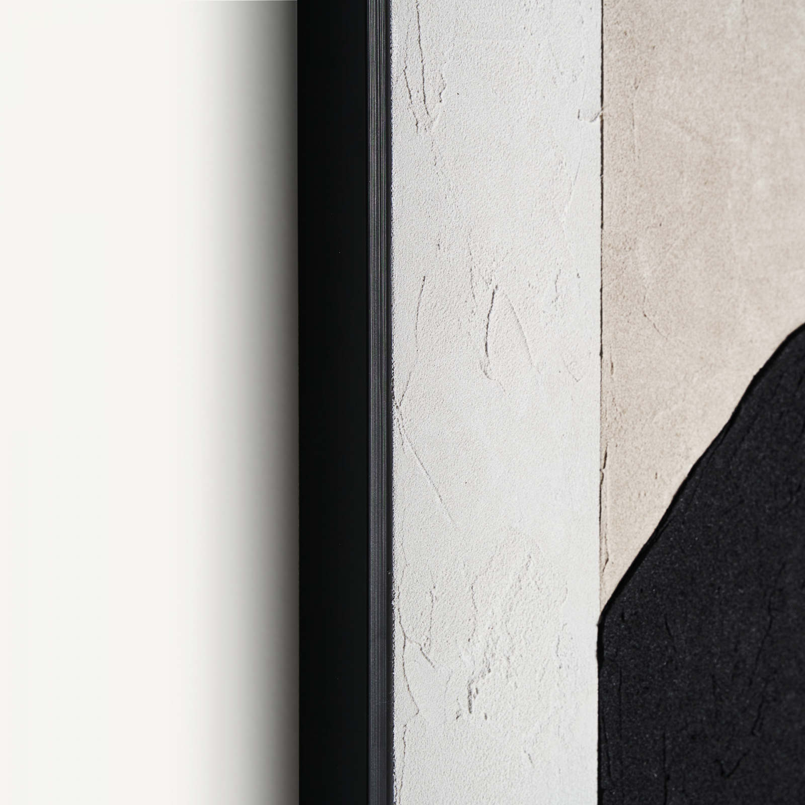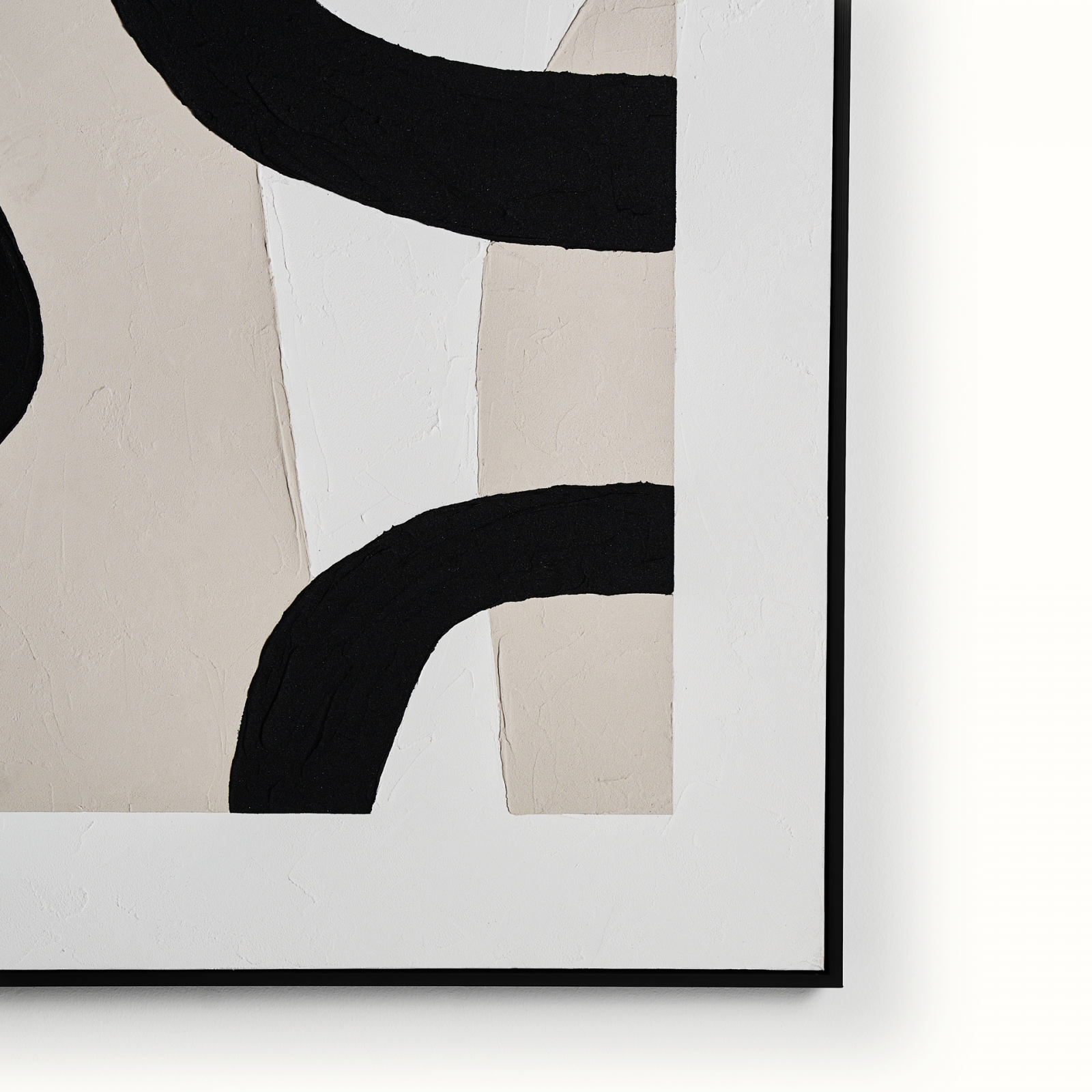 Tablou pe pânză în ulei, creație artizanală spaniolă în stil contemporan. Compoziție elegantă în alb și negru cu design minimalist. Tablou de artă modern pentru decorațiuni interioare rafinate.