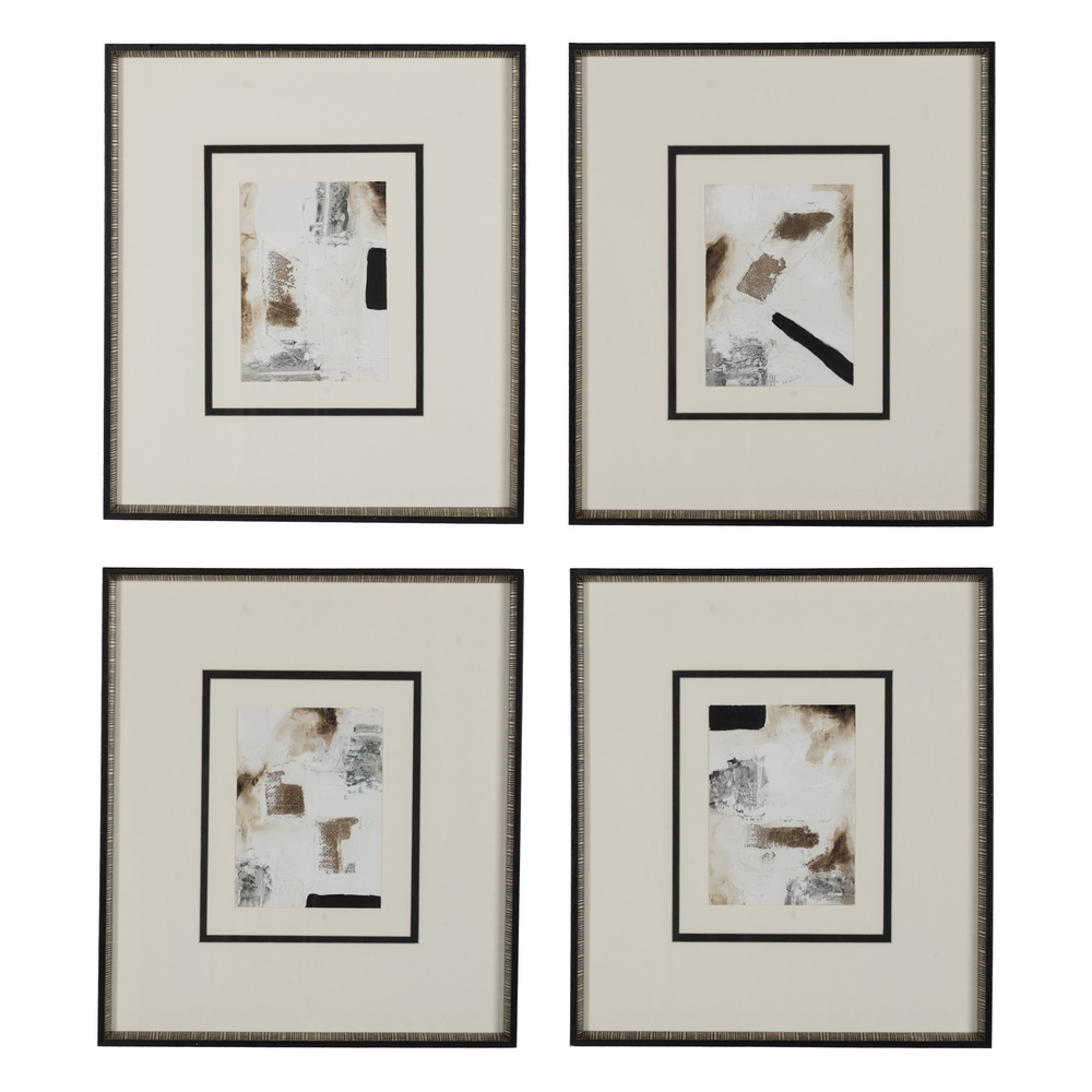 Denzzo Set de 4 tablouri abstracte pictate manual pe lemn si sticla 44 X 50 CM