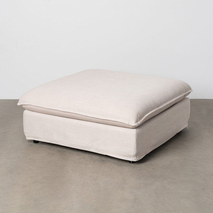Acest puf tapitat este conceput pentru amenajări interioare care urmăresc confort vizual și volume generoase. Forma joasă, proporțiile ample și finisajul în nuanță bej creează o piesă potrivită pentru zone de relaxare, completând natural un living sau un spațiu de odihnă cu estetică calmă și echilibrată.