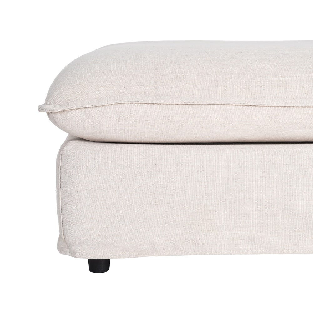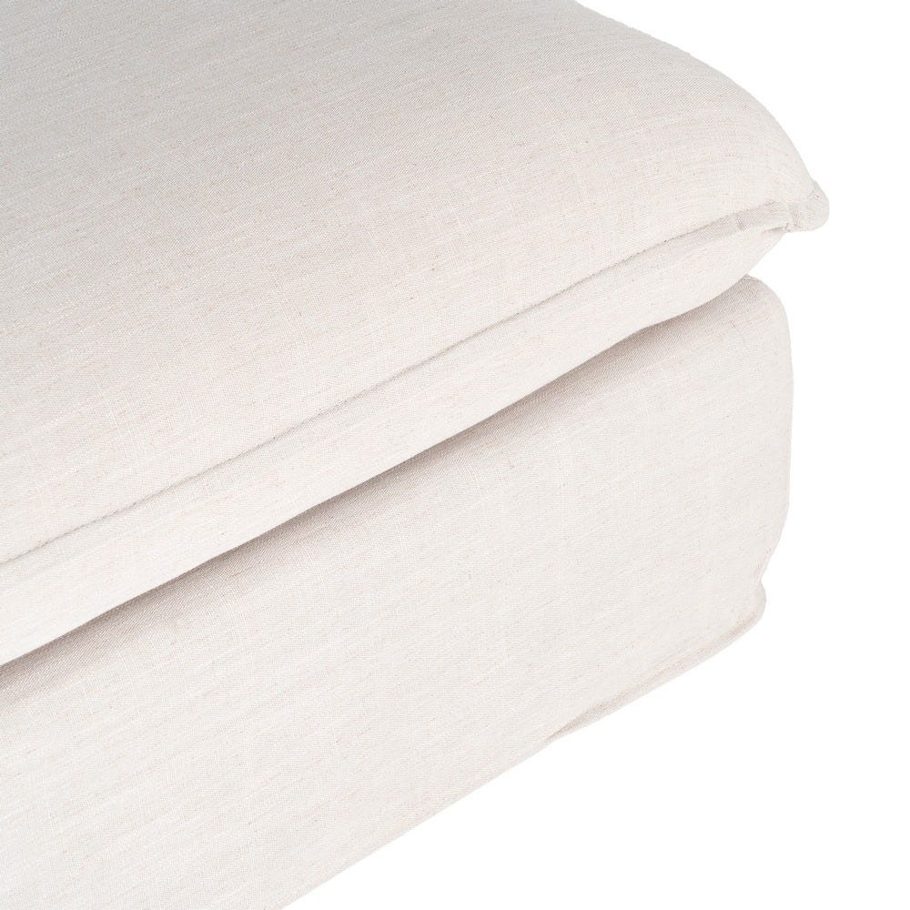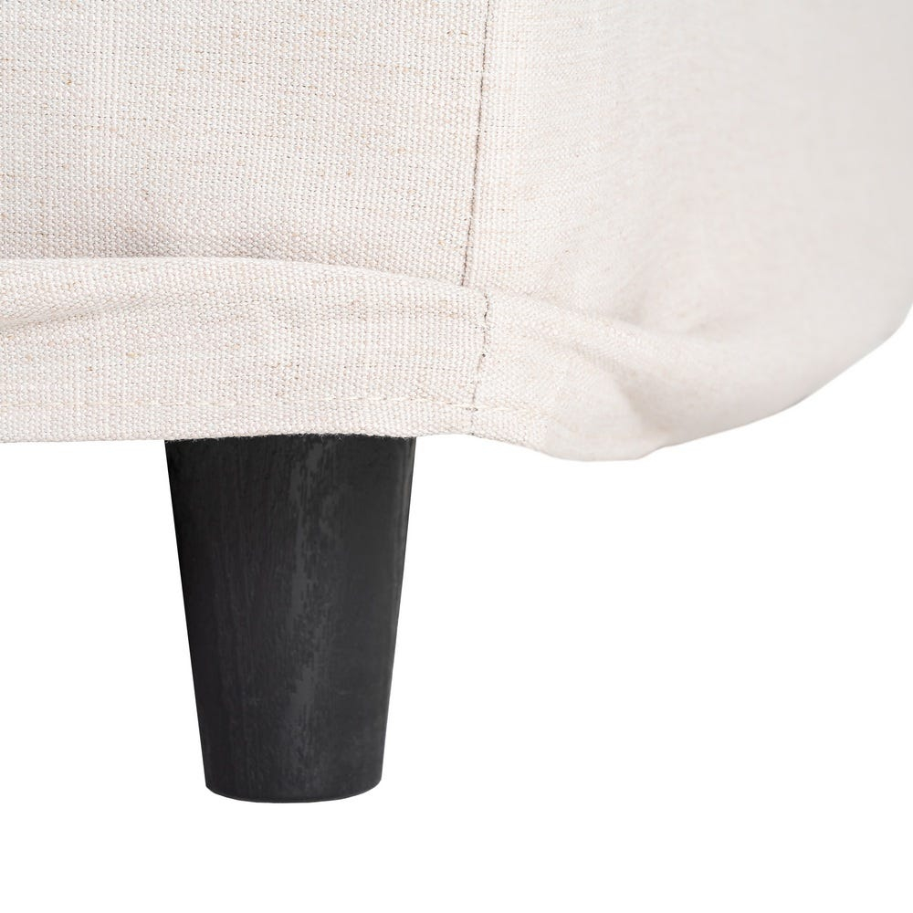 Șezutul este realizat cu umplutură din spumă cu densitate de 28 kg m3, susținut de o structură din mdf. Tapițeria din stofă de in și poliester are un aspect uniform și contribuie la un look natural, potrivit pentru interioare luminoase. Pernele sunt detașabile și pot fi întreținute prin curățare chimică.