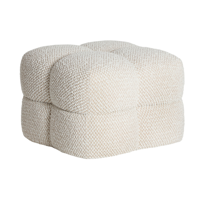 Puful Nook este un puf pătrat tapițat cu stofă texturată, utilizat ca suport pentru picioare sau șezut ocazional.