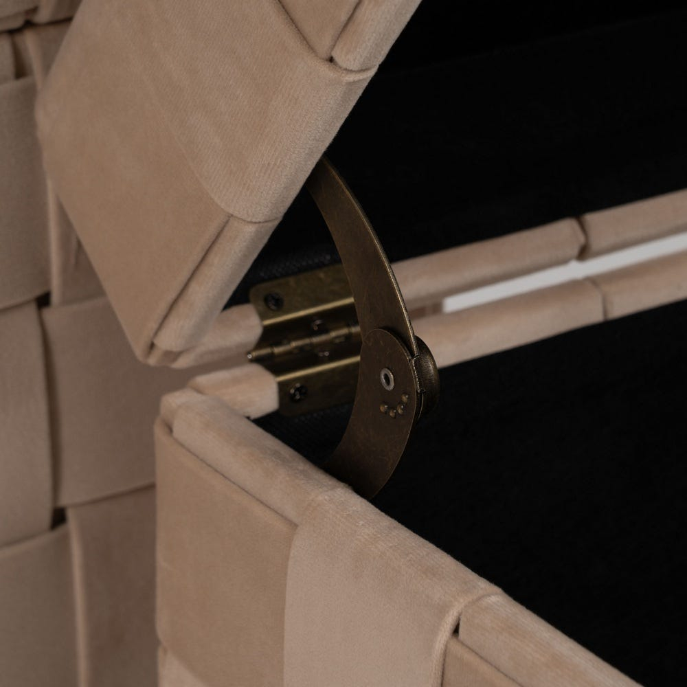 Capacele se ridică lin și dezvăluie compartimente încăpătoare pentru pături, jucării sau accesorii, iar stratul de spumă de 30 mm asigură confort la ședere. Datorită celor două dimensiuni, pufurile funcționează împreună sau separat ca tabureți, măsuțe de sprijin sau module decorative.