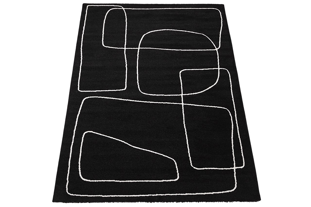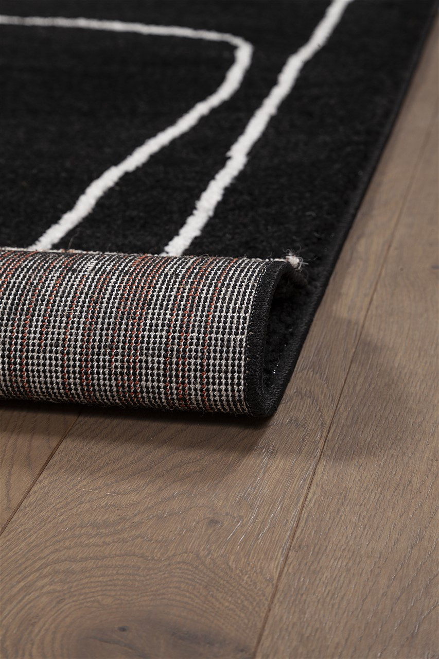 Covor modern negru ivory de dimensiuni mari cu design abstract. Materialele durabile si aspectul contemporan il recomanda pentru living, dormitor si camera tinerilor. Textura din iuta si finisajele de calitate asigura un decor modern.