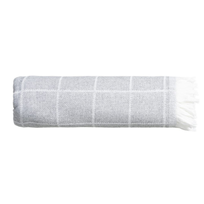 Cuvertura din bumbac gri perlat cu model in carouri si franjuri ofera un aspect calm si elegant dormitorului. Cuvertura din bumbac gri perlat cu model in carouri si franjuri acopera patul cu un strat confortabil si decorativ. Cuvertura din bumbac gri perlat cu model in carouri si franjuri este usor de integrat in decoruri luminoase si naturale.