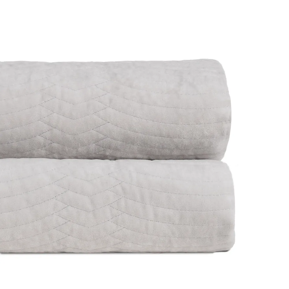 Aceasta cuvertura matlasata din catifea alb perlat, cu dimensiuni de 270x260 cm, este ideala pentru paturi king size. Creata prin tehnica quilt, prezinta un model decorativ in forma de solzi de peste. Exteriorul din catifea 100% poliester (230 gr/m2) ofera o textura luxoasa si stralucire delicata, iar interiorul din microfibra (70 gr/m2) asigura confort termic optim. Umplutura de 120 gr poliester adauga volum si izolatie. Se poate spala la 30°C si usca in uscator la maxim 60°C. Nuanta alb perlat si modelul solzi de peste se potrivesc cu diverse stiluri de amenajare. O alegere rafinata pentru paturi mari, oferind confort si un aspect elegant.