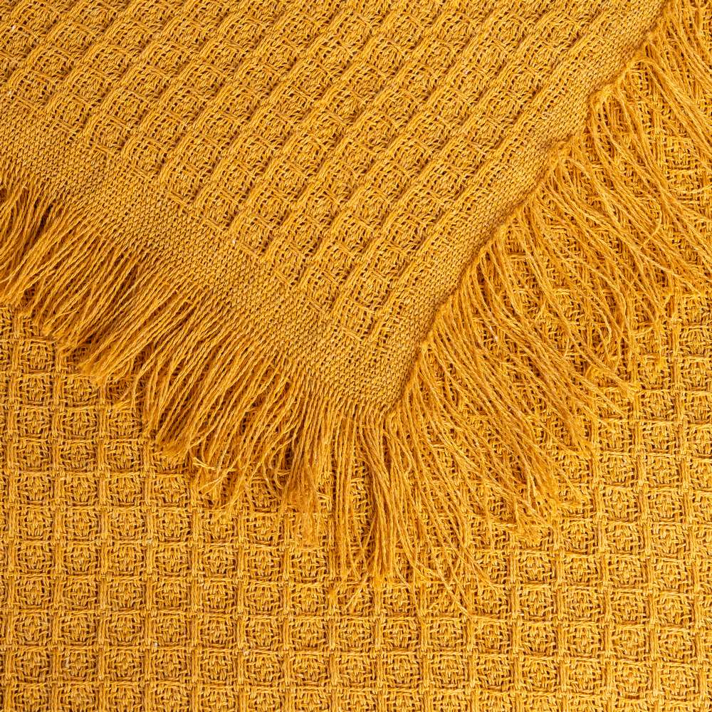 Sfatul designerului CreativDeco: combină această cuvertură ocru cu lenjerii în tonuri deschise sau naturale pentru a crea un dormitor luminos și primitor, în care textura devine elementul central al decorului.
