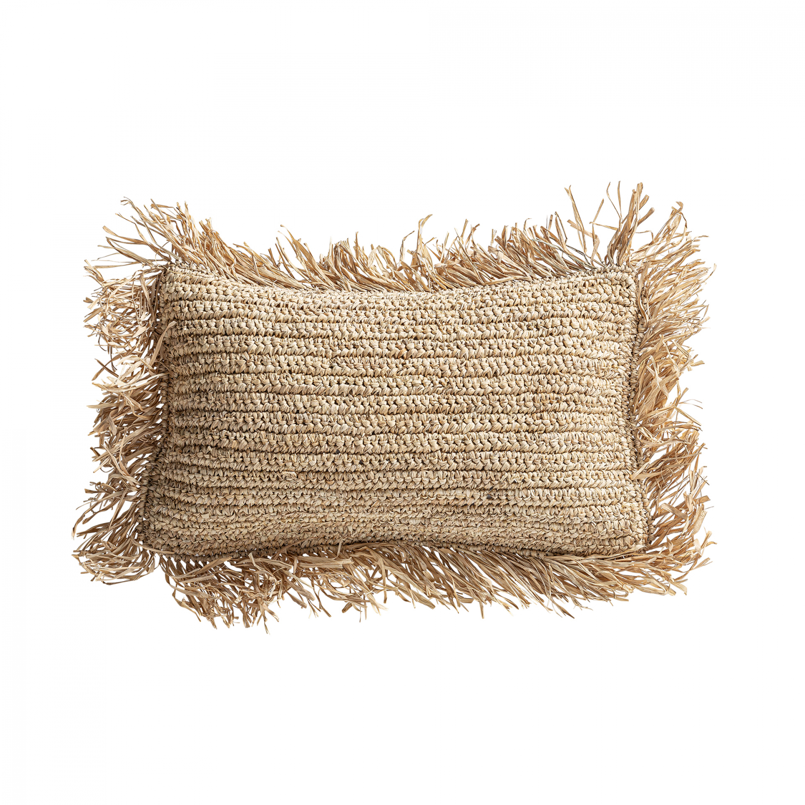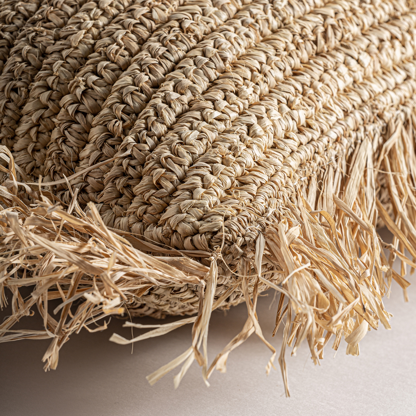 Perna decorativa din fibra naturala bej, o piesa boho ce aduce textura si echilibru in orice interior. Cu dimensiuni de 60 cm lungime, 40 cm latime si 15 cm inaltime, aceasta perna devine un element de accent in diverse spatii. Creata manual din fibra naturala si poliester de mestesugari spanioli, perna reflecta autenticitatea stilului boho. Finisajul bej ofera un aspect cald si organic. Greutatea de 0,4 kg faciliteaza manevrarea. Aceasta perna artizanala aduce un aer boho relaxat si echilibrat in orice incapere.