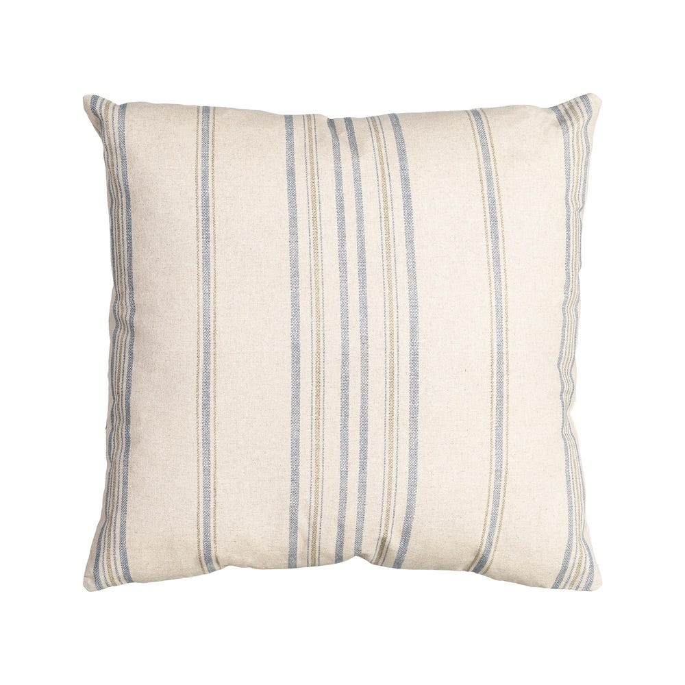 IXIA Perna decorativă pătrată crem cu albastru și gri din bumbac și in cu imprimeu dungi 60 x 60 cm