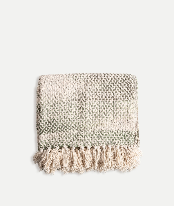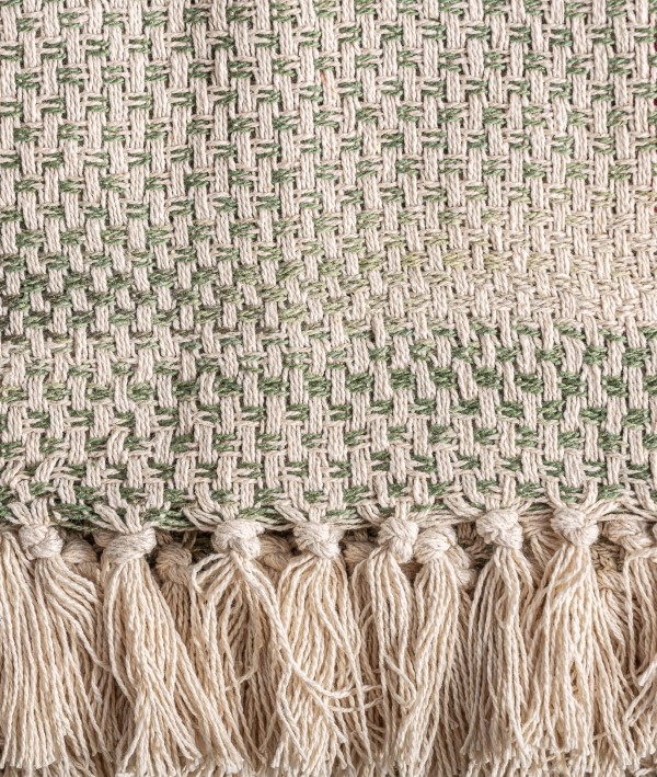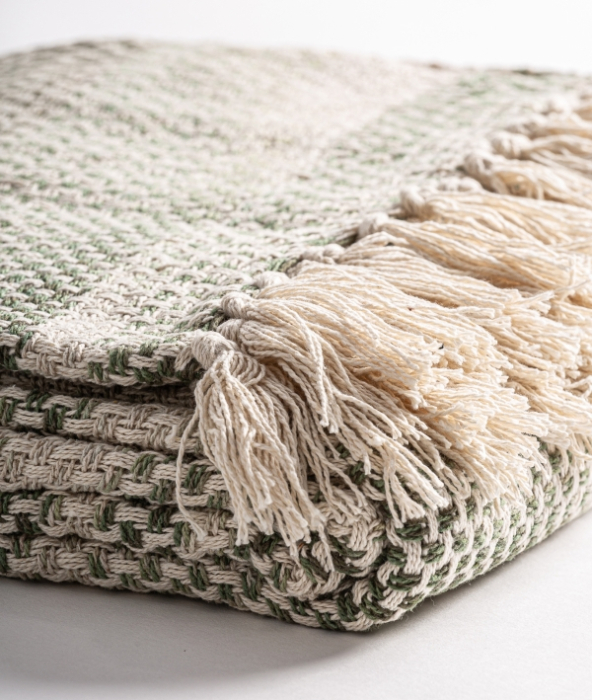 Textura decorativa a bumbacului, completata de finisajul cu franjuri, ofera pledului Esarhe un aspect natural si placut la atingere. Poate fi asezat cu usurinta pe o canapea, un fotoliu sau la capatul patului, adaugand un strat vizual care imbogateste spatiul fara a-l incarca.