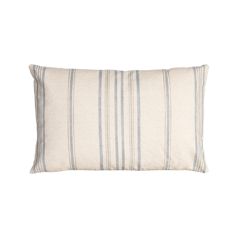 Set 2 perne decorative dreptunghiulare crem cu albastru și gri din bumbac și in cu imprimeu dungi 60 x 40 cm