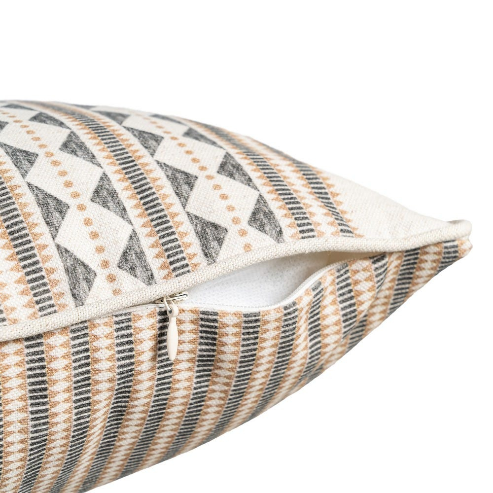 Set 2 perne decorative pătrate crem cu gri și bej din bumbac și in cu model geometric decorativ 45 x 45 cm