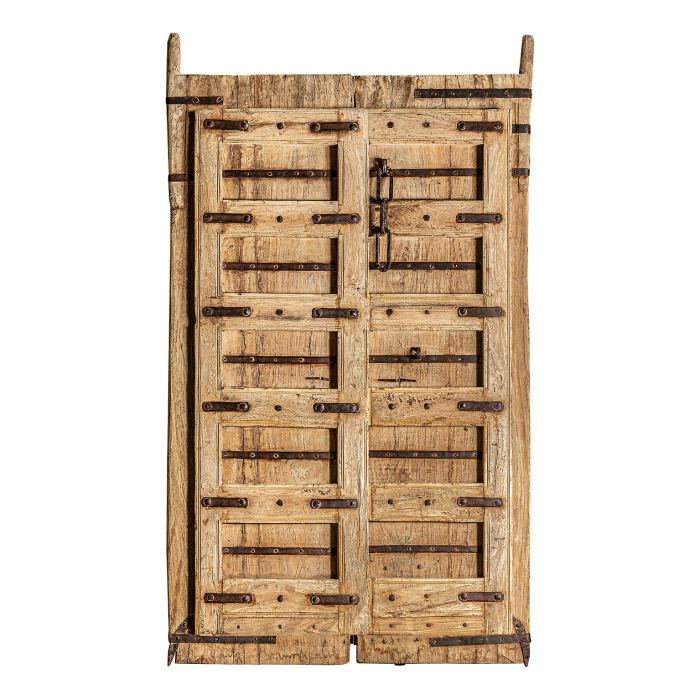 Ușă unicat antică din lemn de tec maro în stil etnic, creată manual. Cu dimensiuni impresionante de 114 cm lungime, 9 cm lățime și 200 cm înălțime, această piesă demontabilă, unică și antică aduce o notă de autenticitate și istorie în orice interior. Ușile etnice din lemn de tec sunt apreciate pentru aspectul lor organic și valoarea istorică. Finisajul natural învechit al lemnului de tec oferă o textura bogată și un aspect plin de caracter. Importată de CreativDeco, această ușă de calitate spaniolă cântărește 140 kg și este ideală pentru a crea un punct focal impresionant în living, hol sau zone de expoziție, aducând un touch de eleganță etnică autentică, unicitate și o poveste unică în casa dumneavoastră.