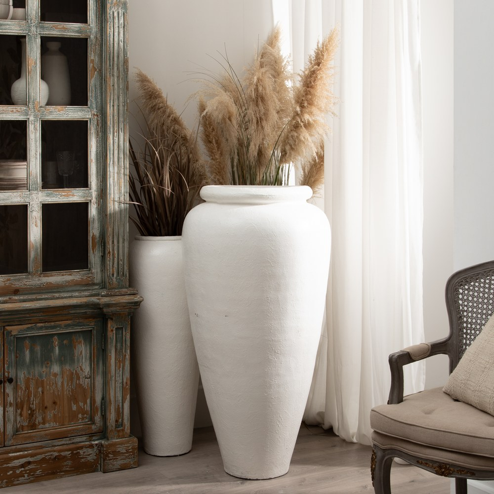 Cu dimensiuni impresionante de 62 cm lungime, 62 cm lățime și 120 cm înălțime, această vază decorativă înaltă din ciment fibrat aduce un aer sofisticat oricărui spațiu. Designul său simplu, dar elegant, cu un finisaj alb mat, este perfect pentru interioare moderne sau minimaliste, precum și pentru decoruri exterioare. Potrivită atât pentru aranjamente florale de mari dimensiuni, cât și ca piesă de sine stătătoare, această vază creează un impact vizual deosebit. Alege vaze înalte și stilate de la CreativDeco pentru a adăuga un plus de rafinament în decorul locuinței tale.