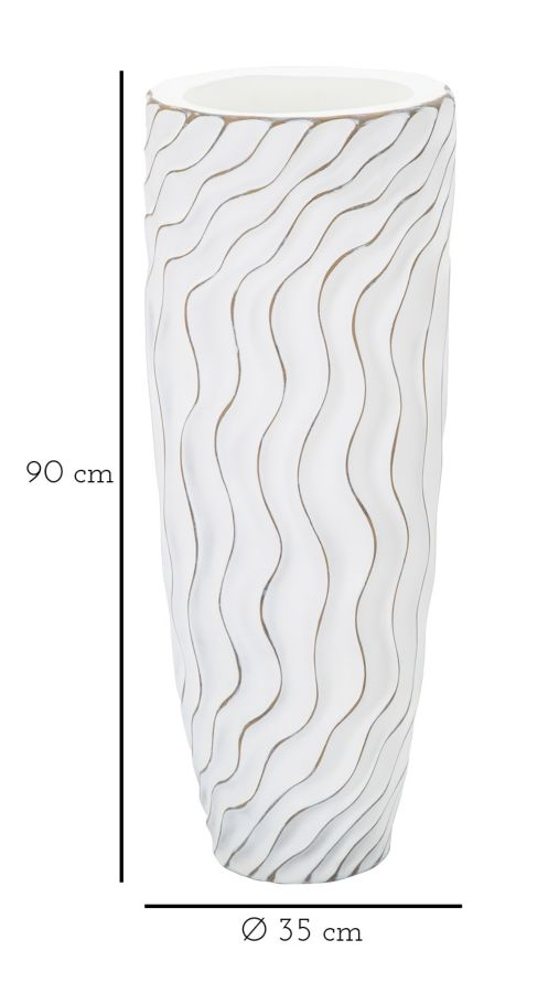 Vaza înaltă din rășină, cu dimensiunile de lățime 35 cm și înălțime 90 cm, este o piesă de decor impresionantă care adaugă un element de eleganță și rafinament în orice interior. Cu un design modern, caracterizat prin linii ondulate și un finisaj alb mat, această vază emană un aer de sofisticare și se integrează perfect în spațiile contemporane sau minimaliste. Datorită dimensiunilor sale generoase, este ideală pentru a fi amplasată pe podea, în colțurile camerelor sau în spații deschise, unde poate deveni un punct focal al încăperii. Această vază nu doar că oferă o soluție estetică pentru expunerea florilor de mari dimensiuni, dar și contribuie la crearea unui decor luxos și armonios. Este o alegere excelentă pentru cei care doresc să aducă un accent de stil și eleganță în locuința lor.